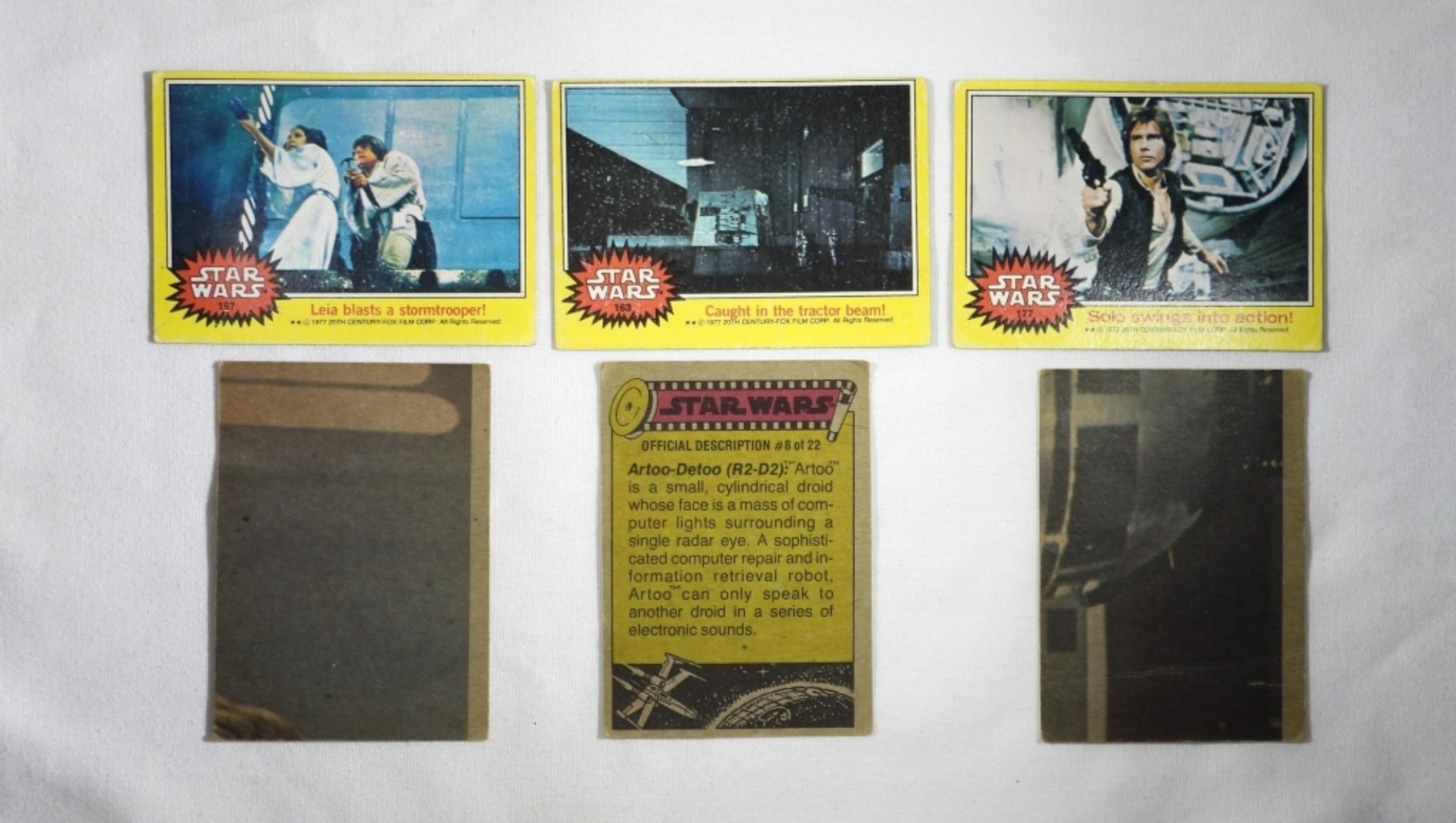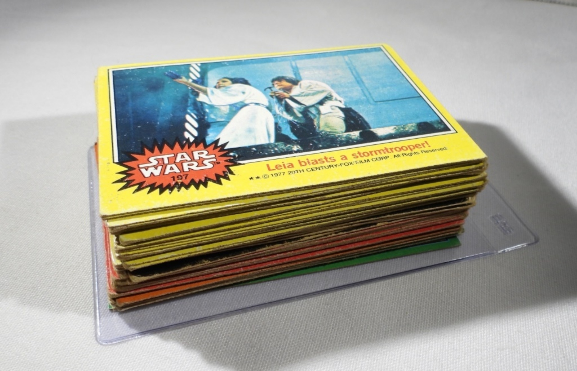 50 TOPPS TRADING CARDS, 1977. GREEN RED, YELLOW & BLACK PACKS. SOME ARE IN GOOD CONDITION, MOST HAVE ROUNDED CORNERS & CREASES.