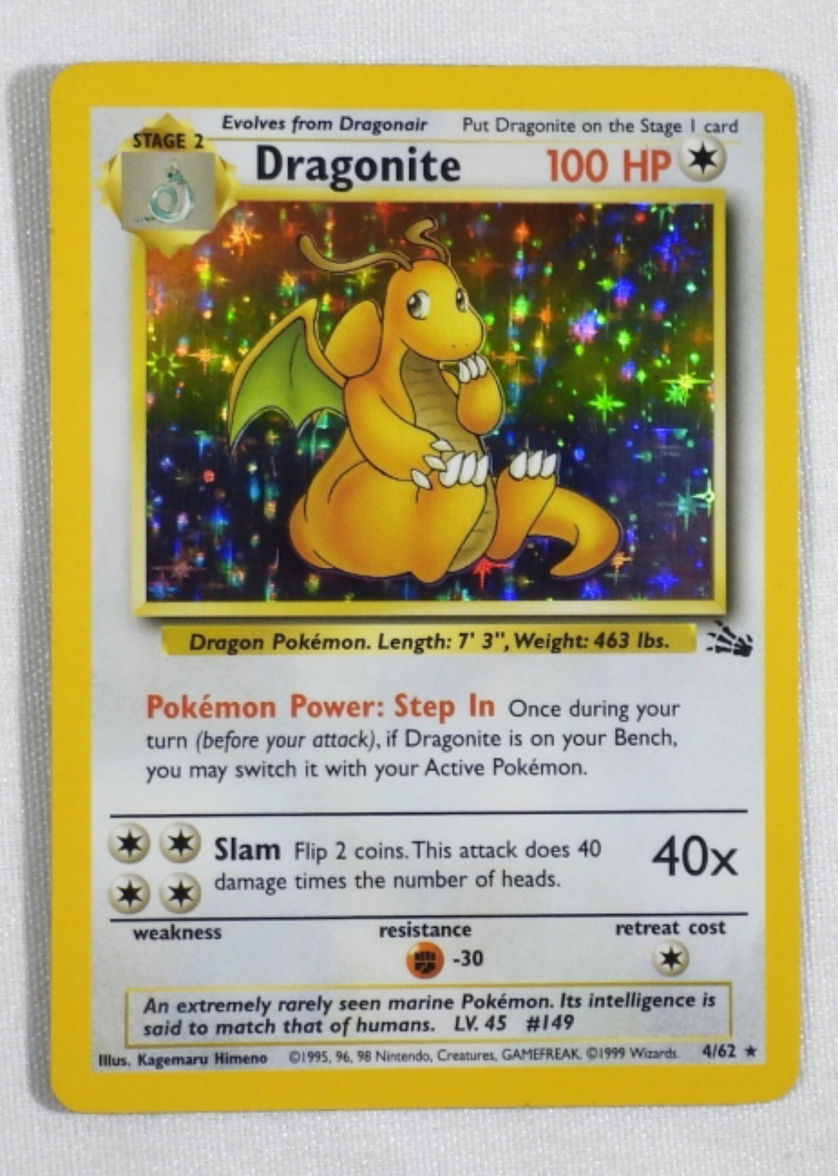 2000 POKEMON CARD, DRAGONITE REVERSE HOLO FOSSIL 4/62. NM/M