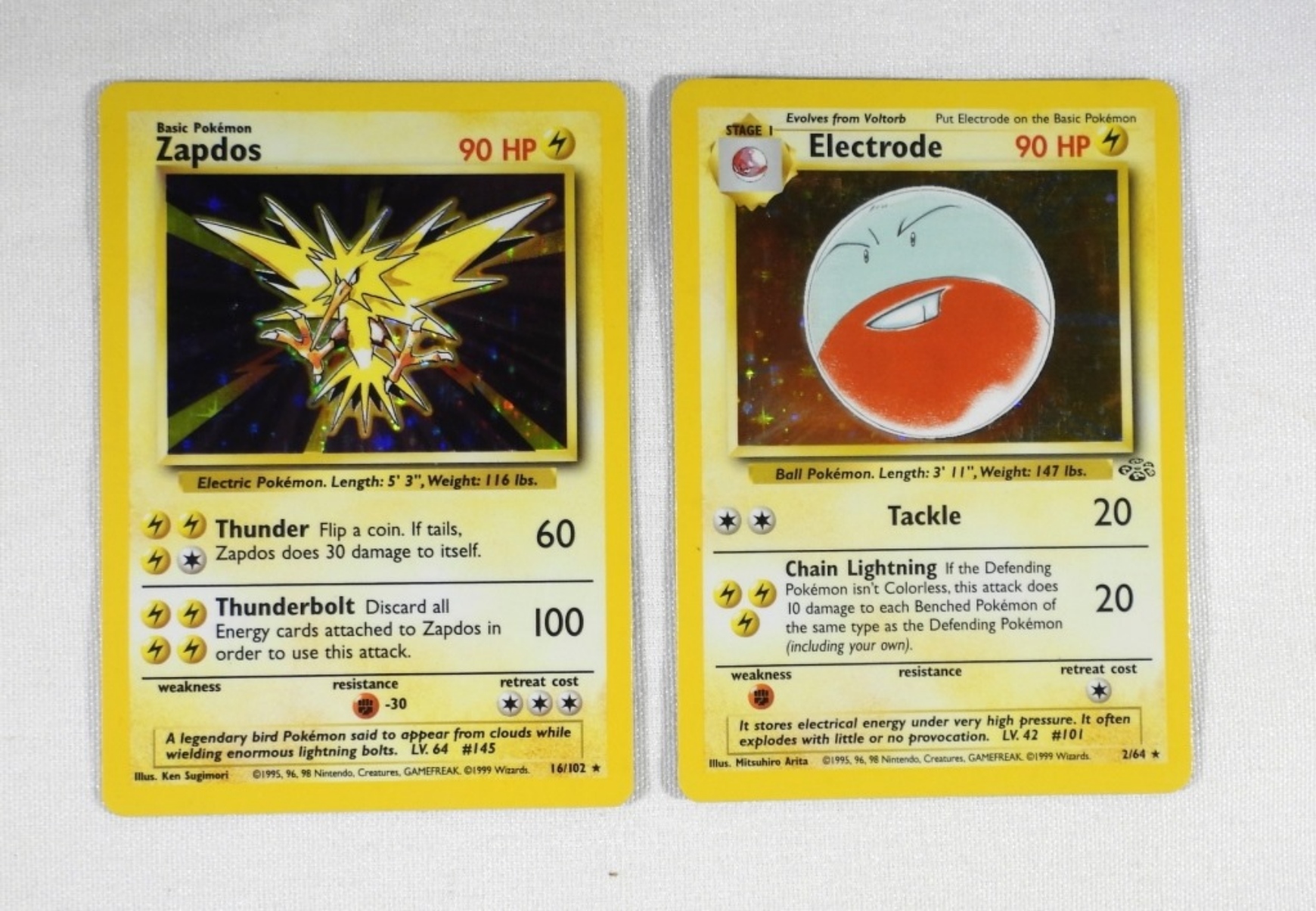 ZAPDOS REVERSE HOLO 16/102. ELECTRODE REVERSE HOLO JUNGLE SERIES 2/64. NM/M