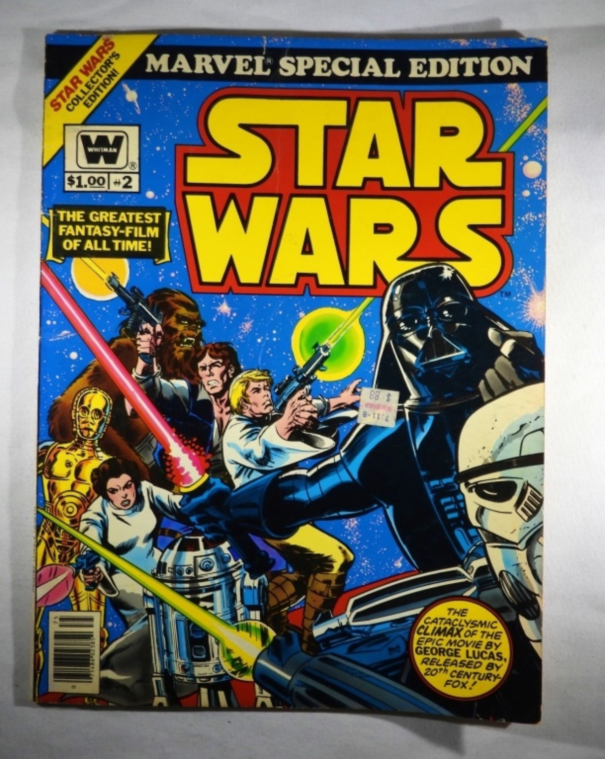 TWO VINTAGE STAR WARS GIANT COMIC BOOKS, ISSUE #1 & 2. 1977. CREASES, TORN PAGES. STILL COLLECTIBLE. SEE PHOTOS PLEASE!