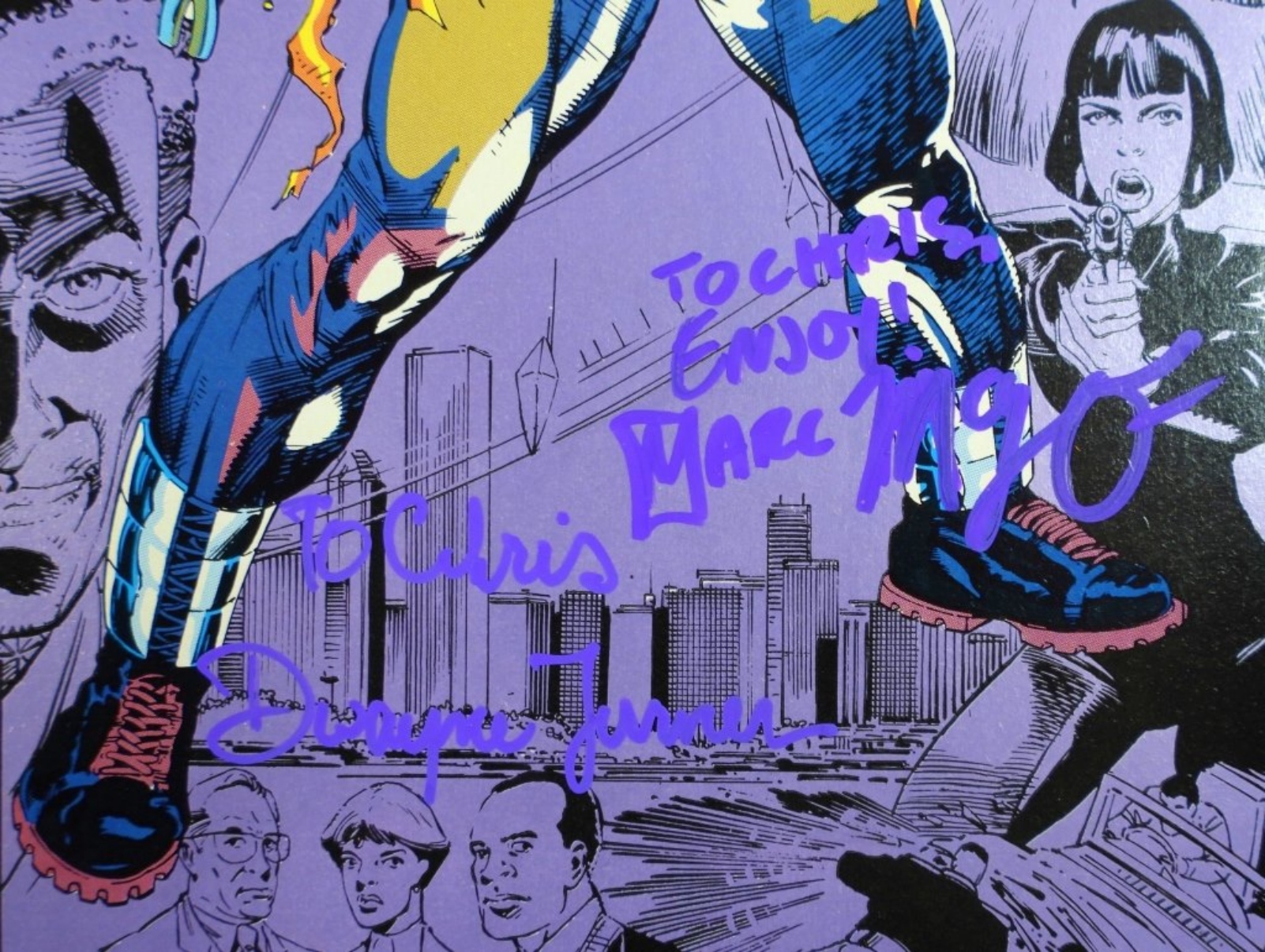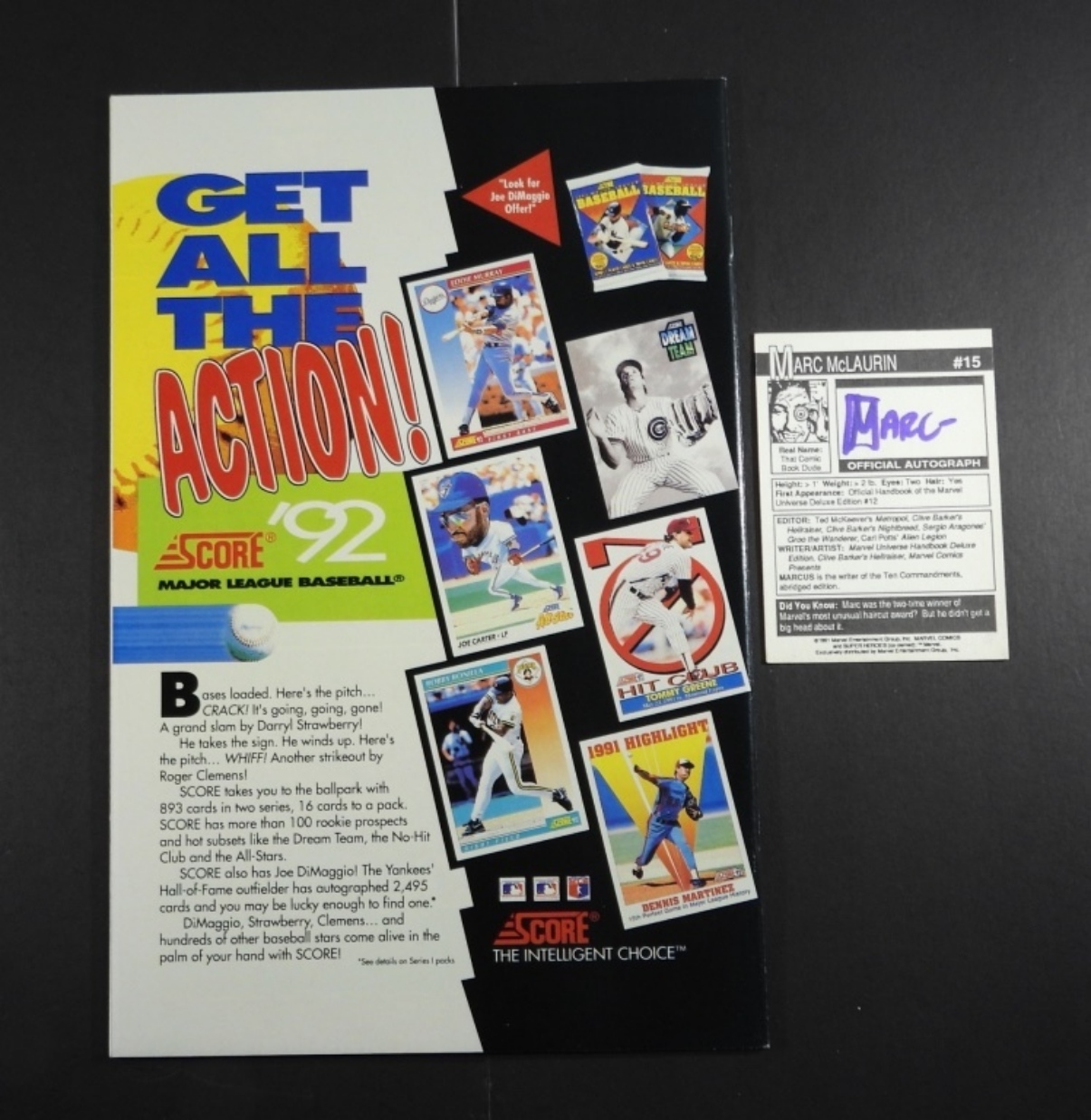 1992 CAGE COMIC BOOK ISSUE/VOLUME 1. AUTOGRAPHED BY MARCUS MCLAURIN & DWAYNE TURNER WITH AN AUTOGRAPHED CARD BY MCLAURIN. NO COA, UNVERIFIED. NM/M