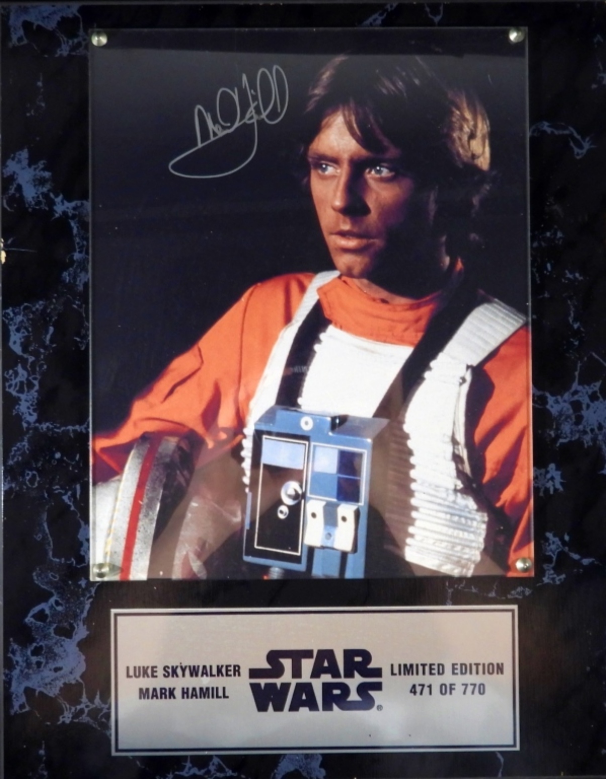 SIGNED PHOTO OF MARK HAMILL “LUKE SKYWALKER” ON PLAQUE – NO COA / UNVERIFIED