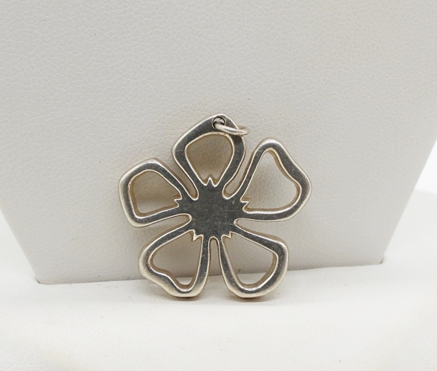 STERLING SILVER, TIFFANY & CO FLOWER PENDANT. 1″ MARKED “TIFFANY & CO 925”. (4 DWT)