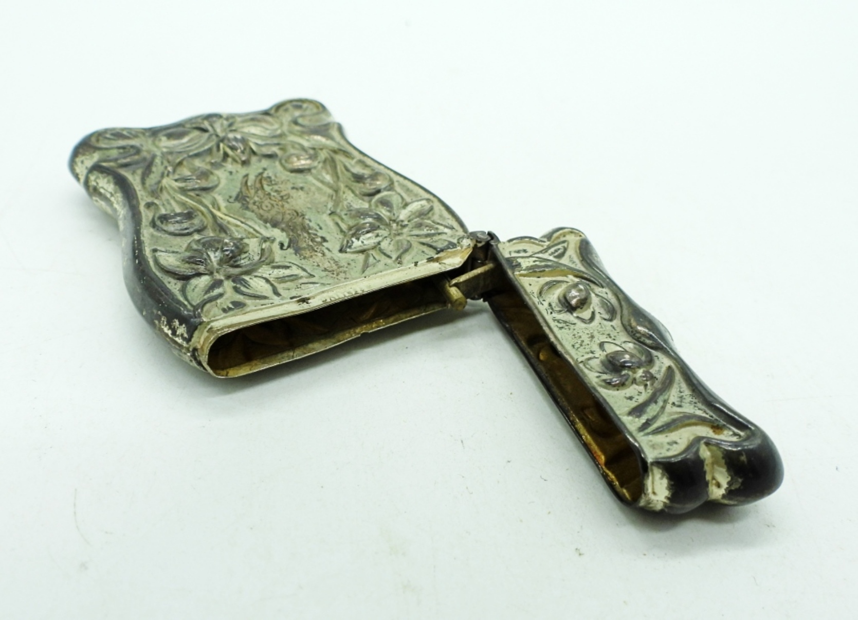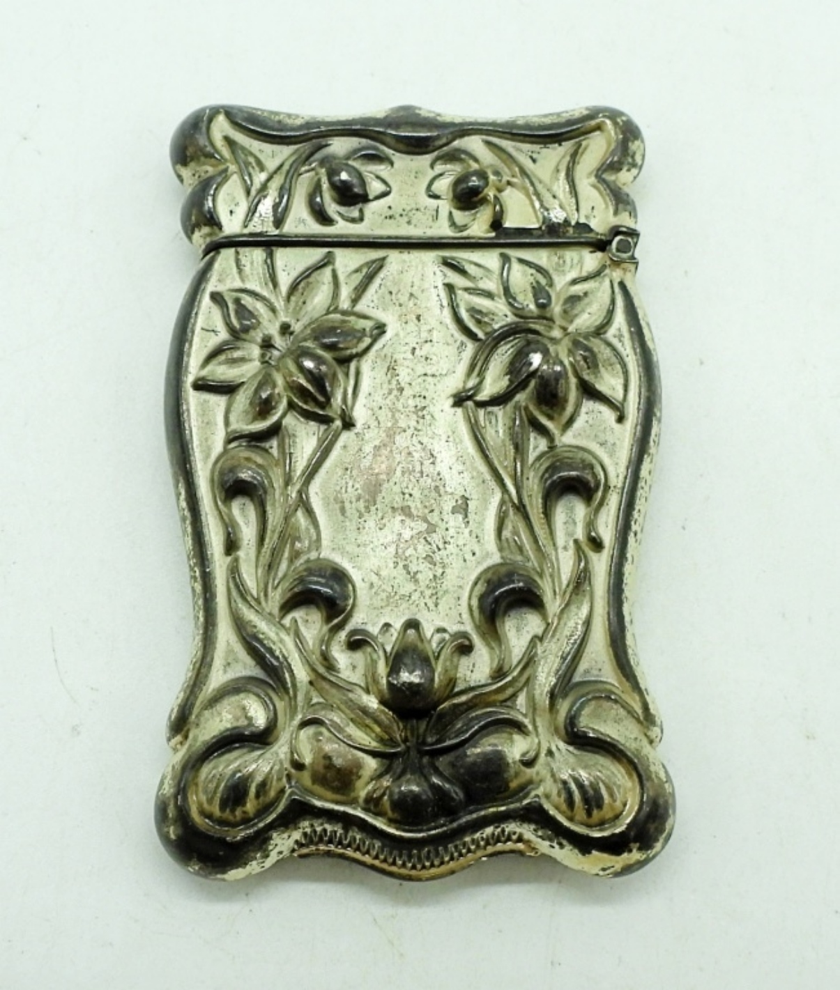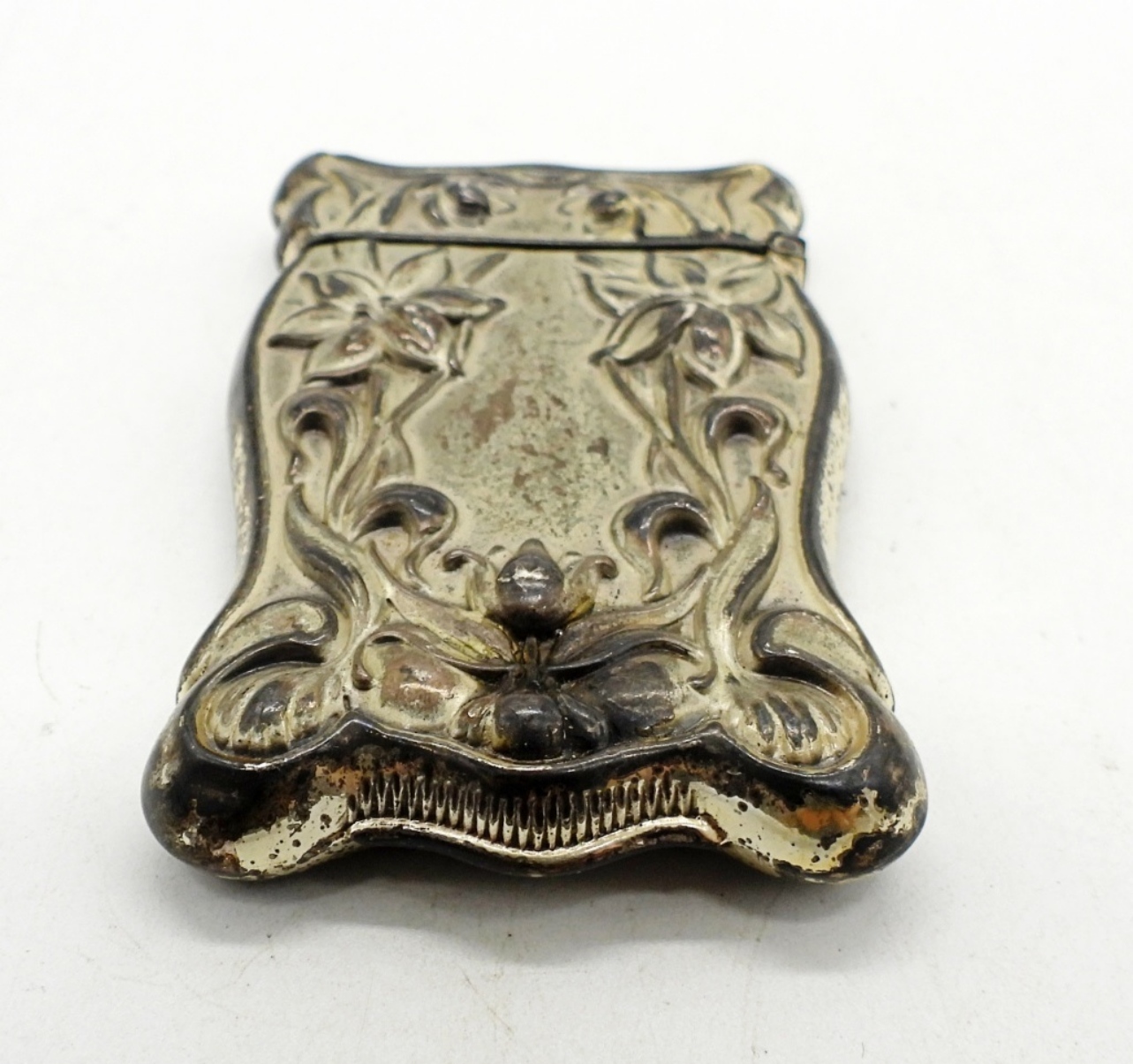 ANTIQUE STERLING MATCH HOLDER. 3″ x 2″. MARKED STERLING (12.8 DWT)