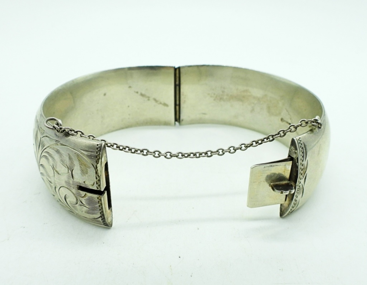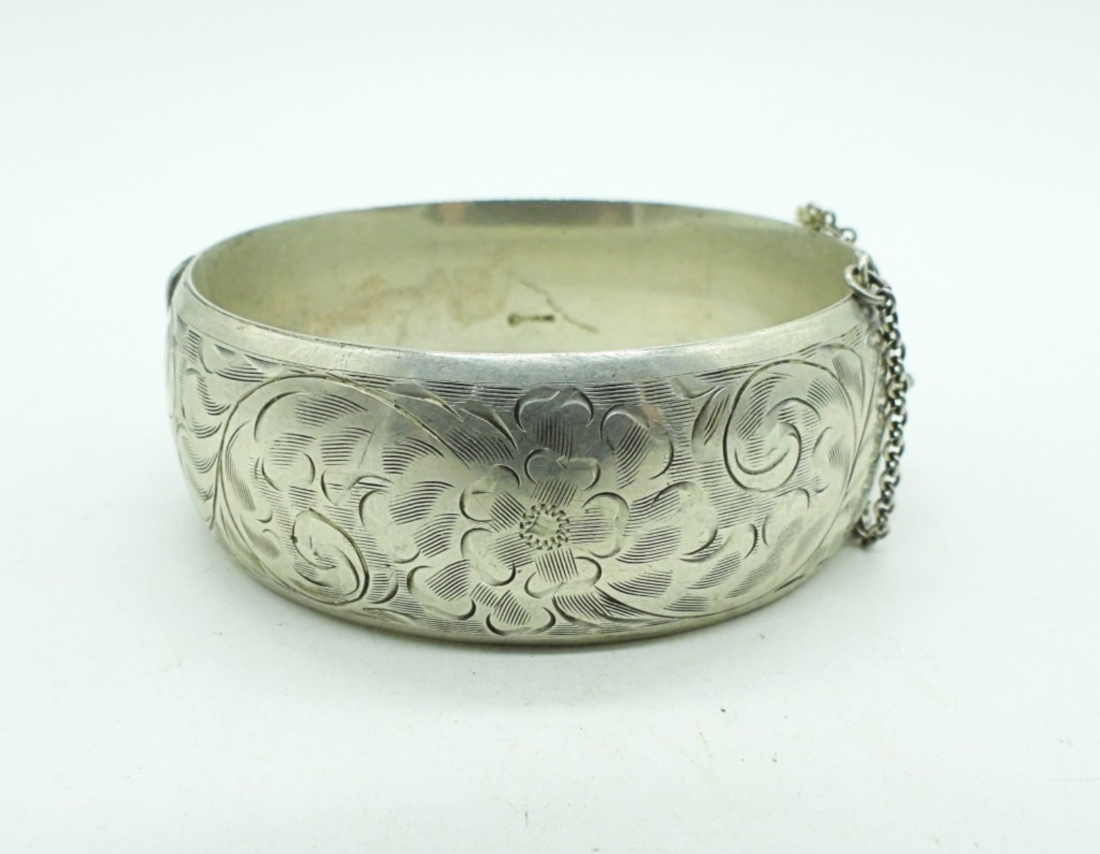 VINTAGE STERLING CUFF BRACELET, ETCHED FLORAL. (25 DWT)