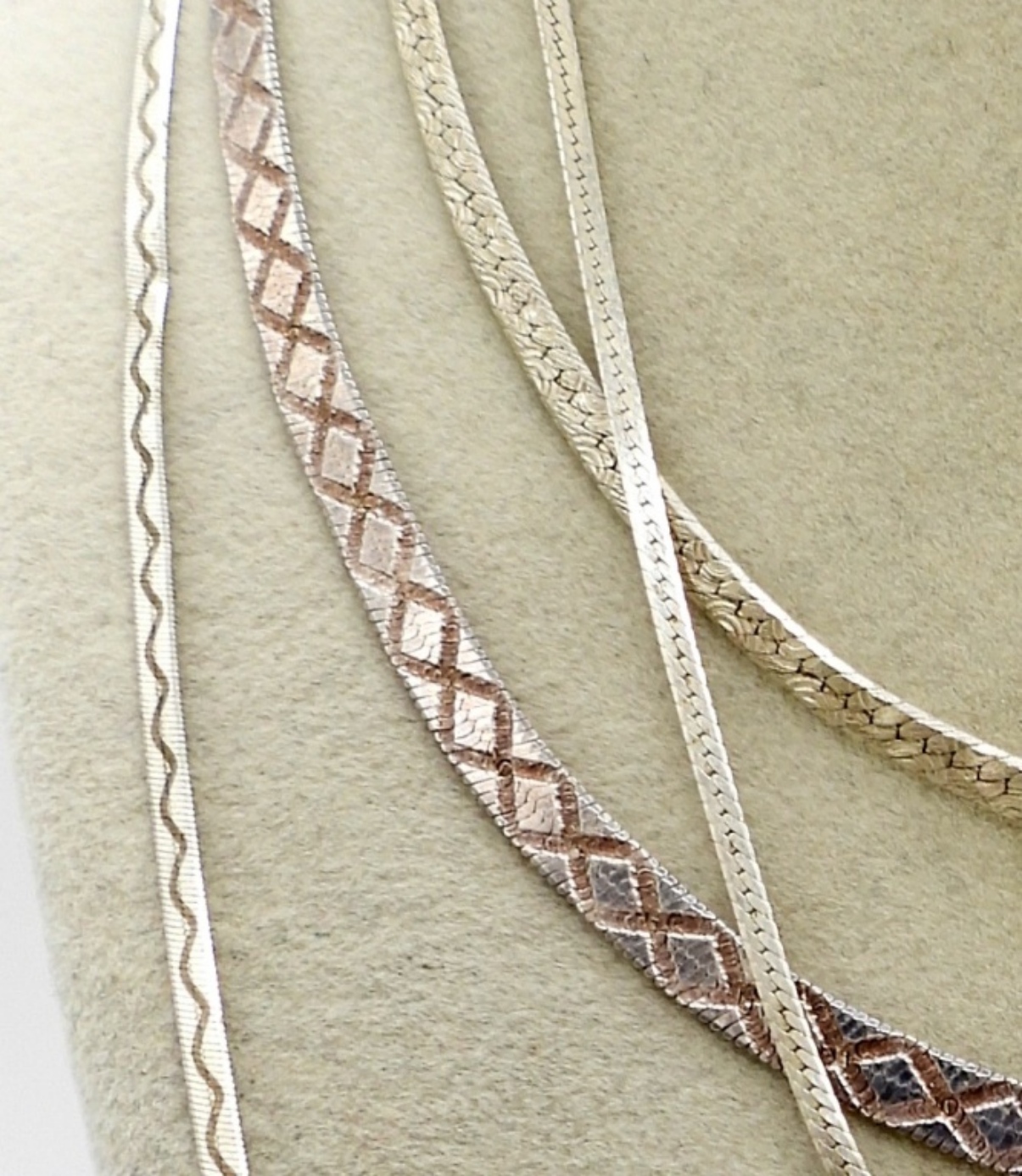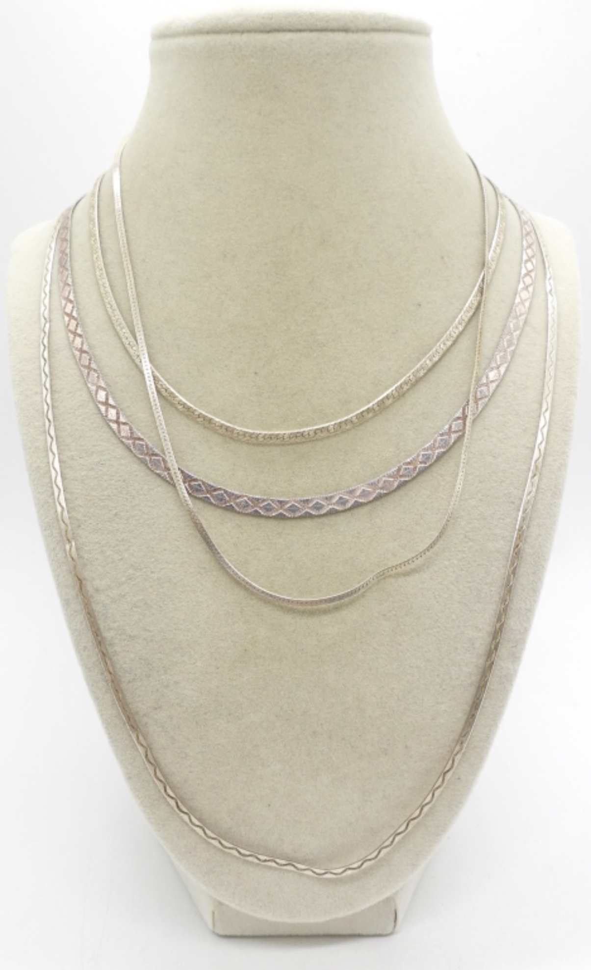 FOUR FANCY STERLING CHAINS. 16″, 18″ & 24″. (14.7 DWT)