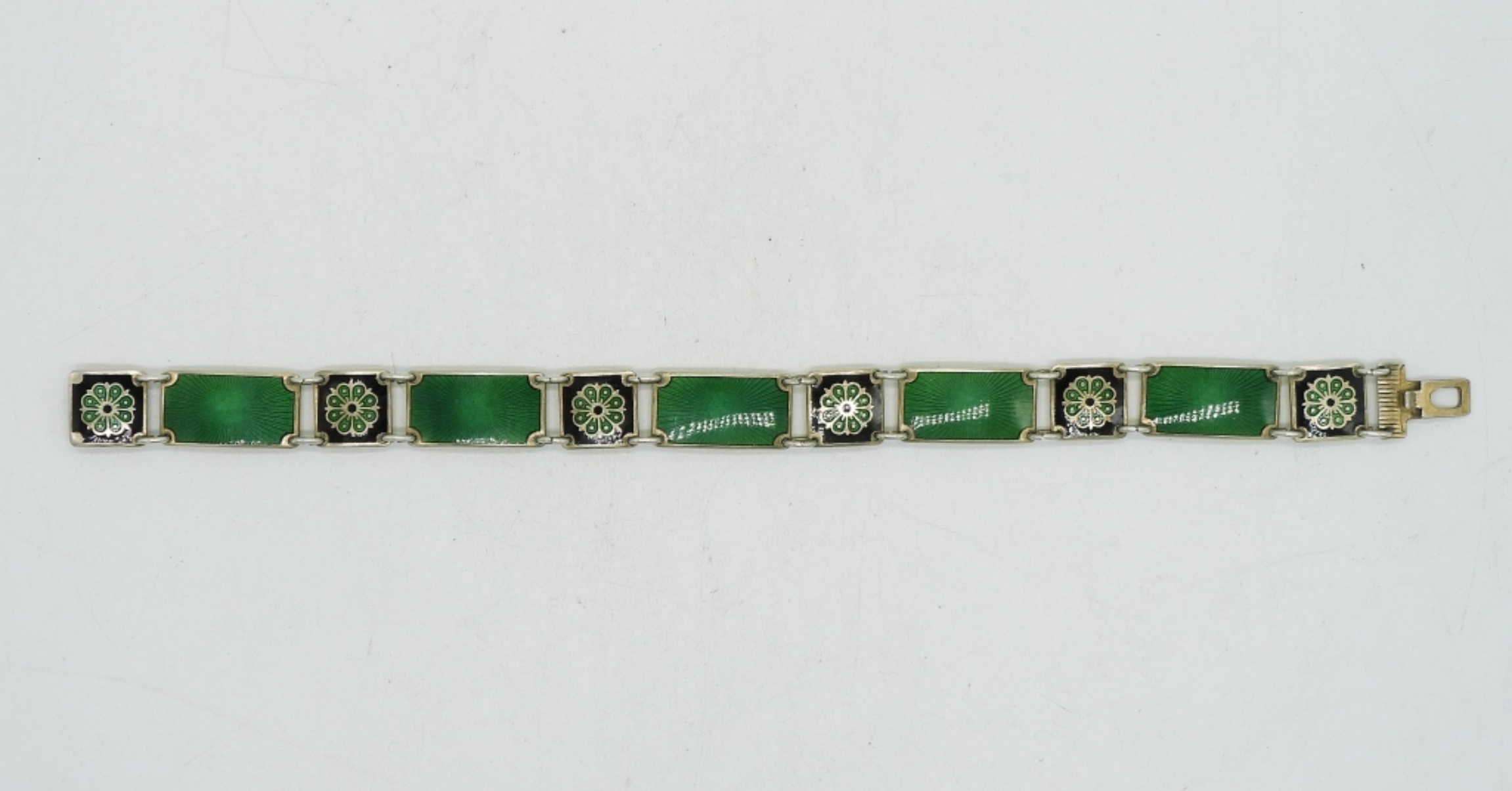 GREEN ENAMEL STERLING BRACELET, MADE IN NORWAY. (11 DWT)