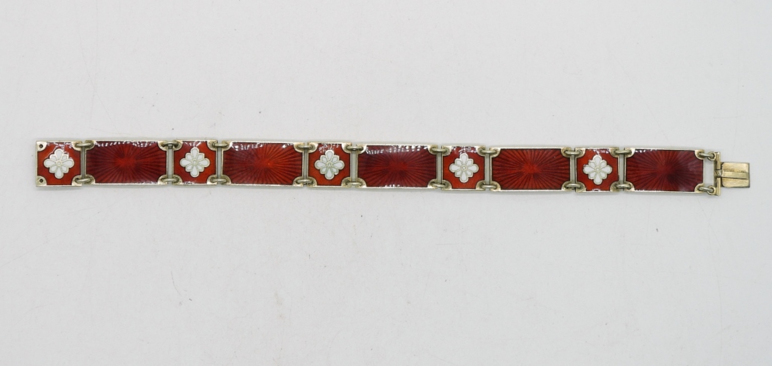RED ENAMEL STERLING BRACELET, MADE IN DENMARK. (15 DWT)