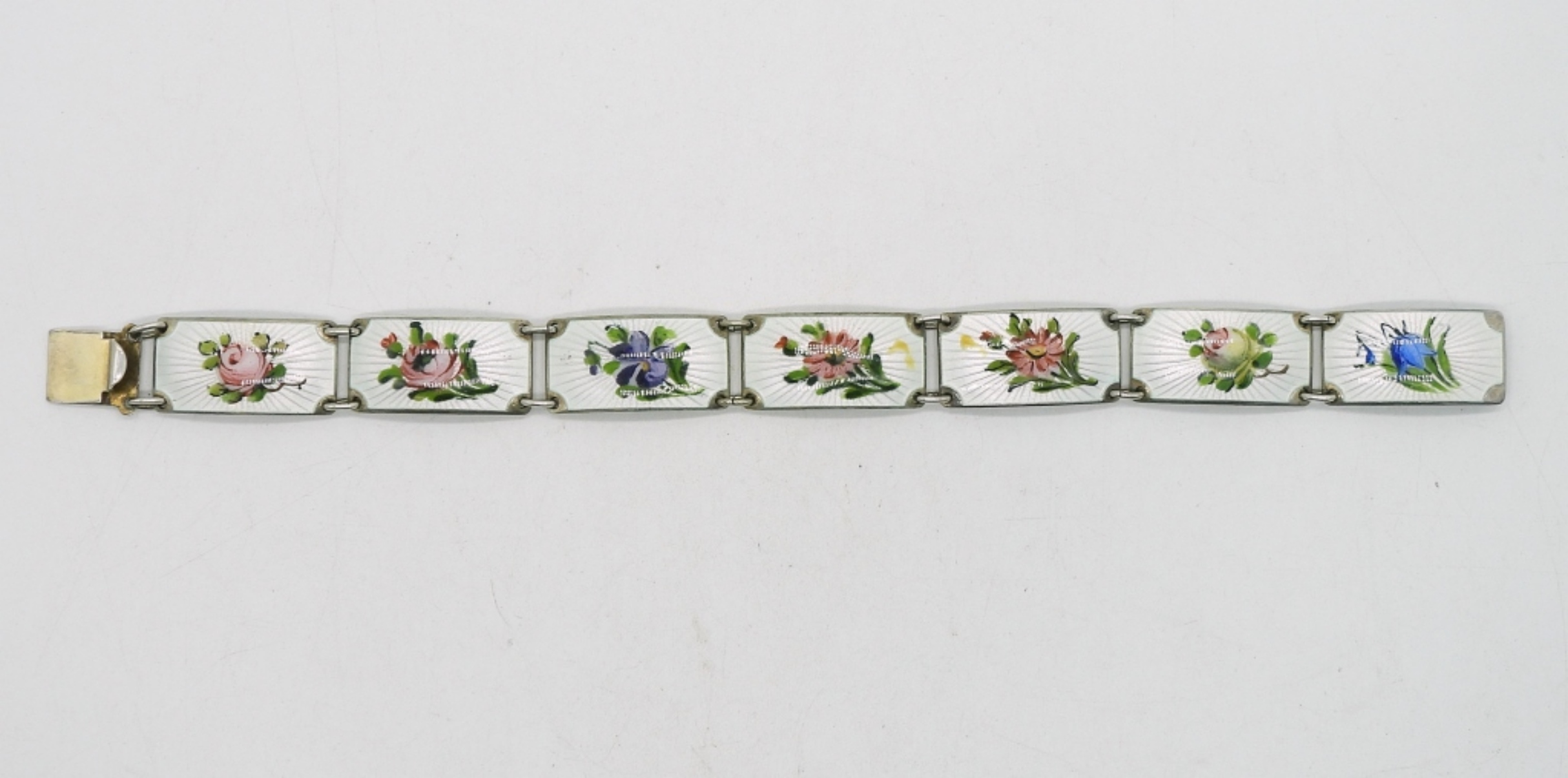 WHITE ENAMEL, FLORAL STERLING BRACELET, MADE IN NORWAY. (16 DWT)