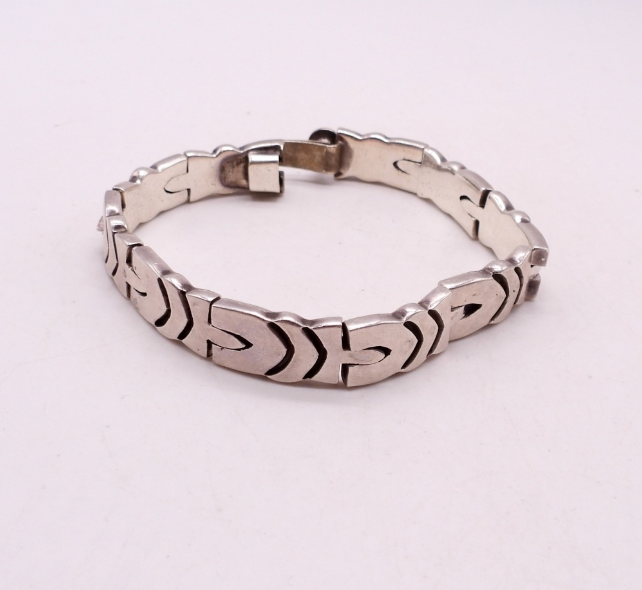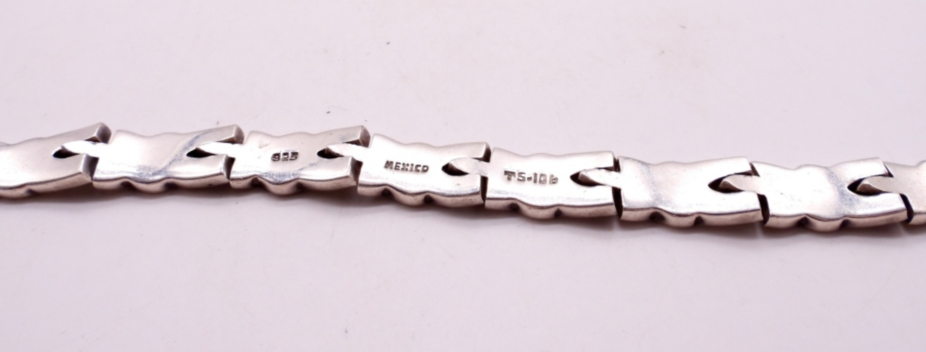 HEAVY VINTAGE STERLING TAXCO BRACELET. “925 MEXICO TS-106?”, 8″. (34.9 DWT)