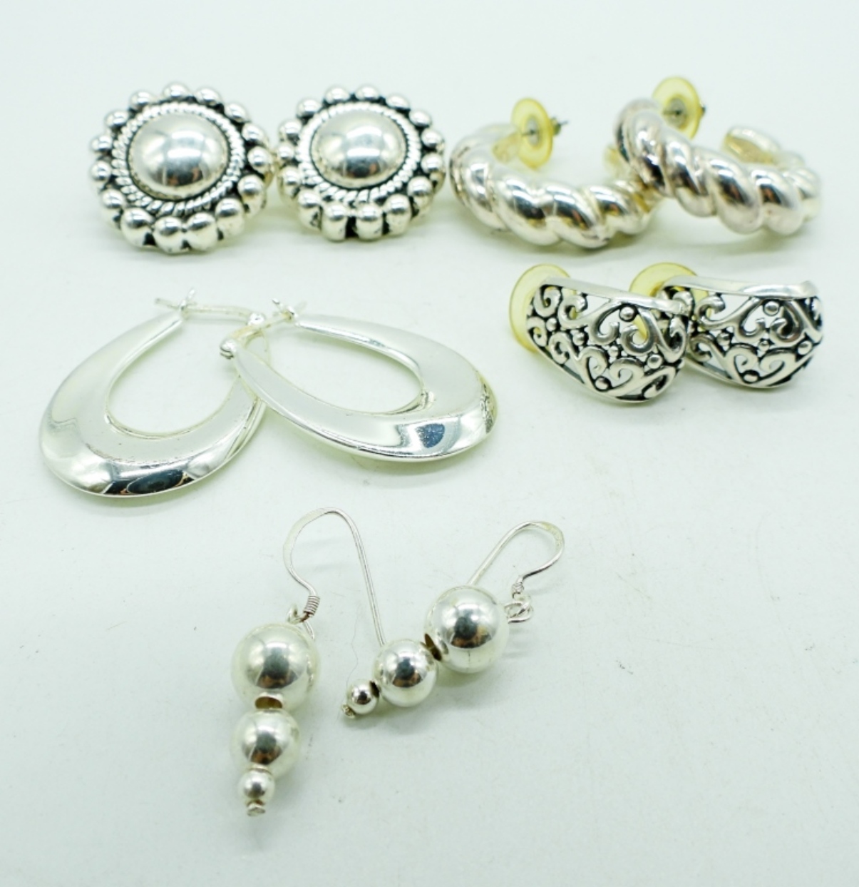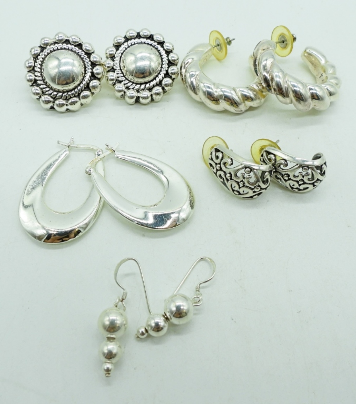FIVE PAIR OF STERLING, MODERN PIERCED EARRINGS. ALL VERY NICE! (23.2 DWT)