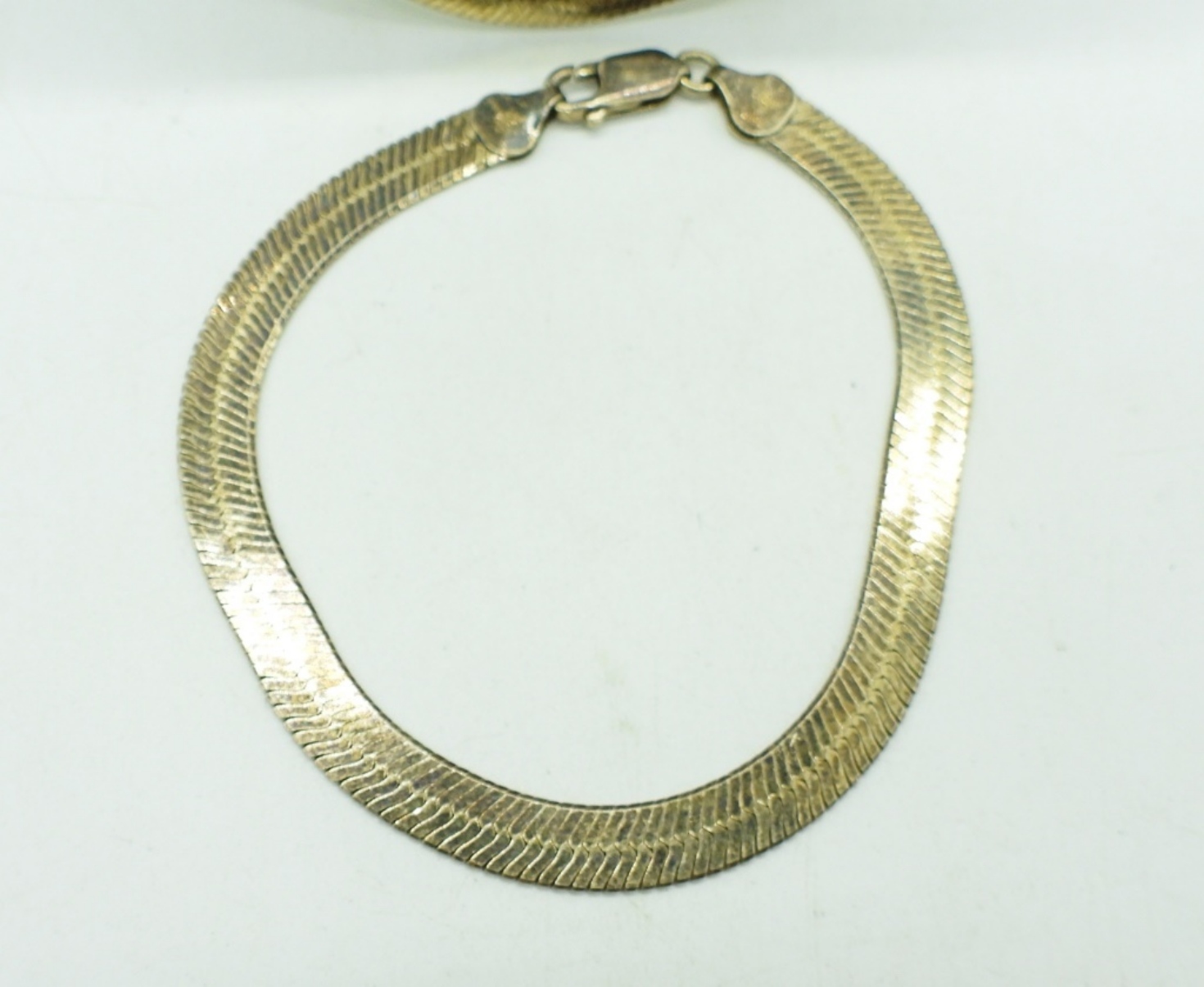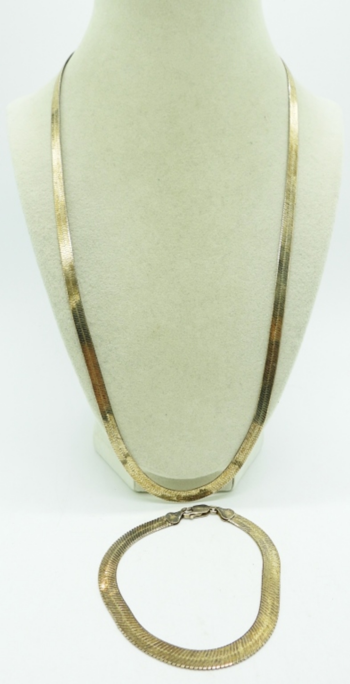 VINTAGE STERLING, GOLD TONE HERRINGBONE NECKLACE AND BRACELET. 24″ & 8″. (16.6 DWT)