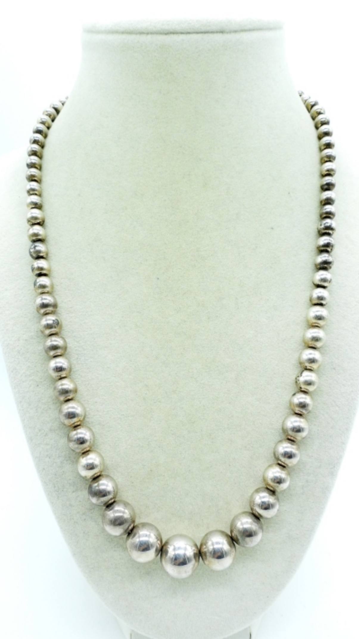21″ VINTAGE STERLING BALL BEAD NECKLACE. (22.4 DWT)