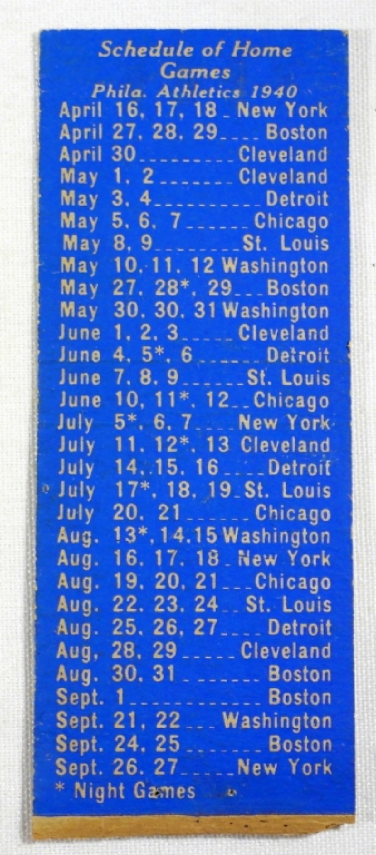 SCHEDULE OF GAMES FROM 1940