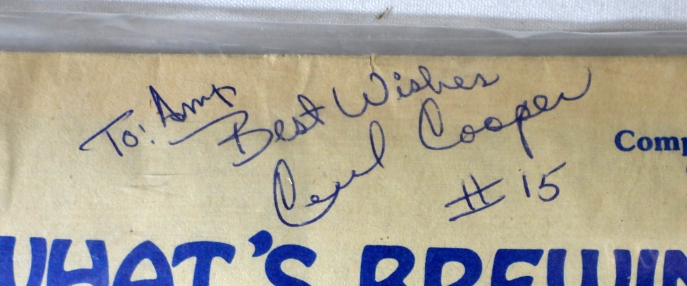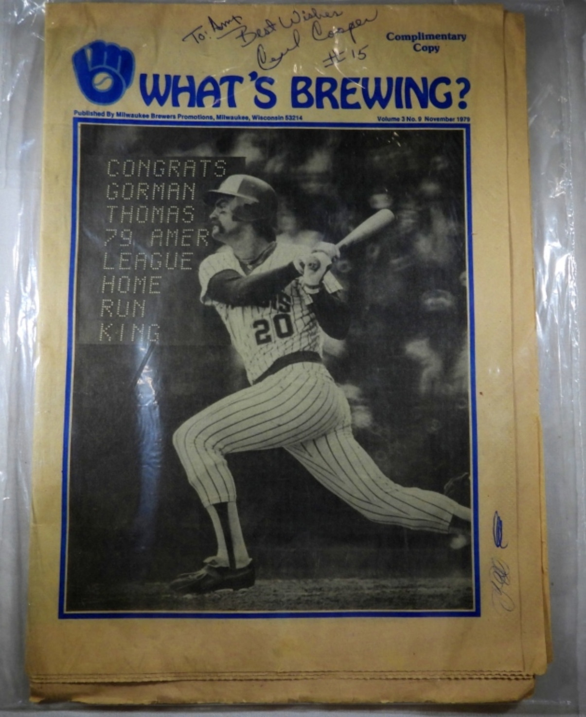 CECIL COOPER AUTOGRAPHED “WHAT’S BREWING” MAGAZINE 1979. “TO AMY, BEST WISHES CECIL COOPER #15”. NO COA / UNVERIFIED