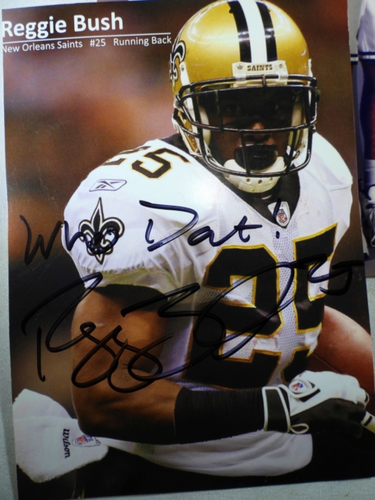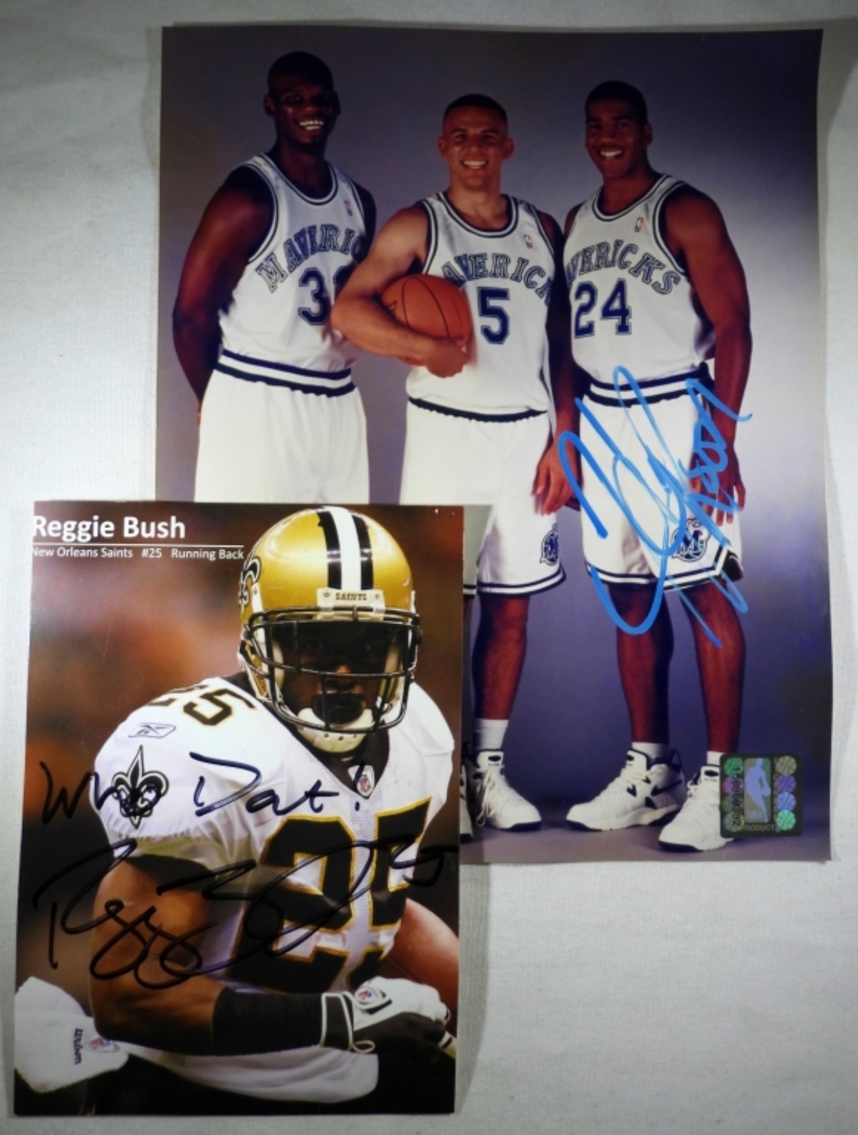 REGGIE BUSH NEW ORLEANS SAINTS #25 AUTOGRAPHED PHOTO (NO COA / UNVERIFIED). JIM JACKSON 1995 NBA OFFICIAL PHOTO, AUTOGRAPHED ONLY BY JIM JACKSON. NO COA / UNVERIFIED.
