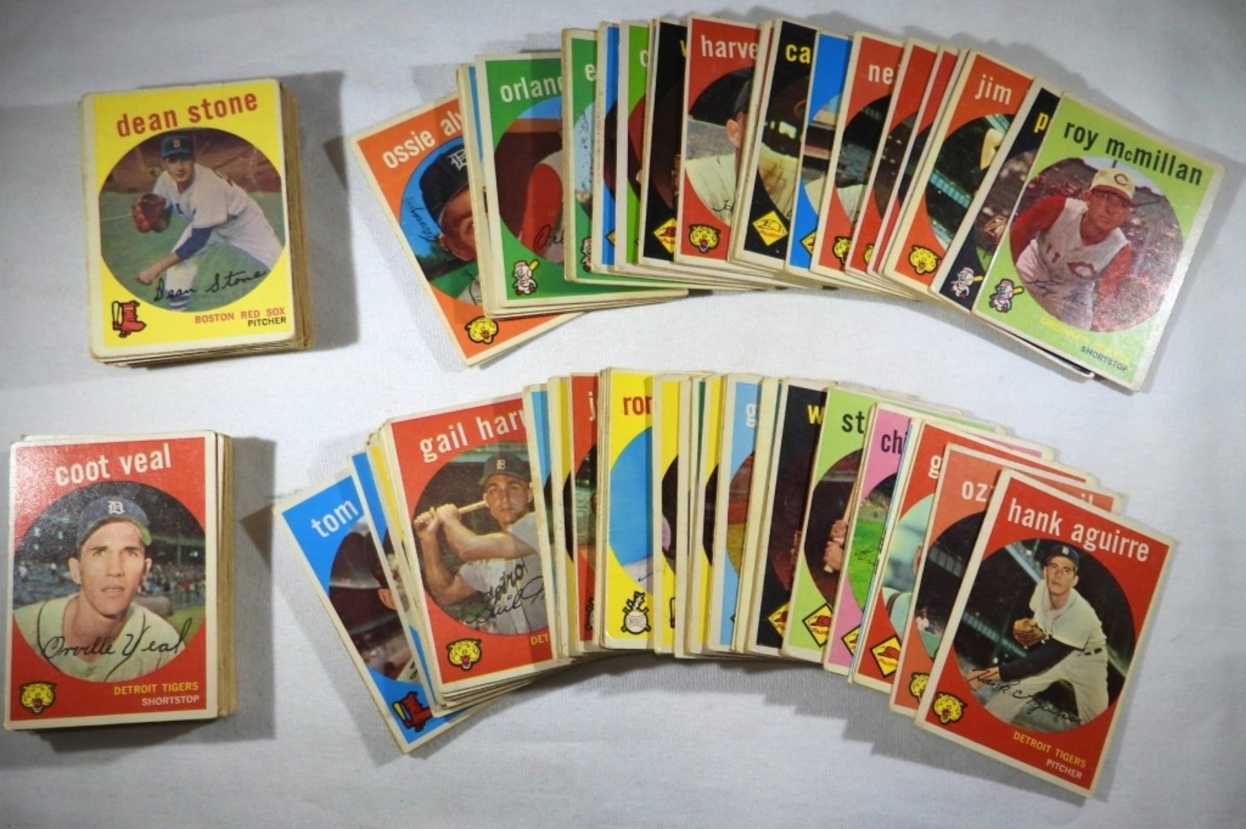 139 TOPPS BASEBALL CARDS, 1959. UNSEARCHED, SOME DUPLICATE CARDS.