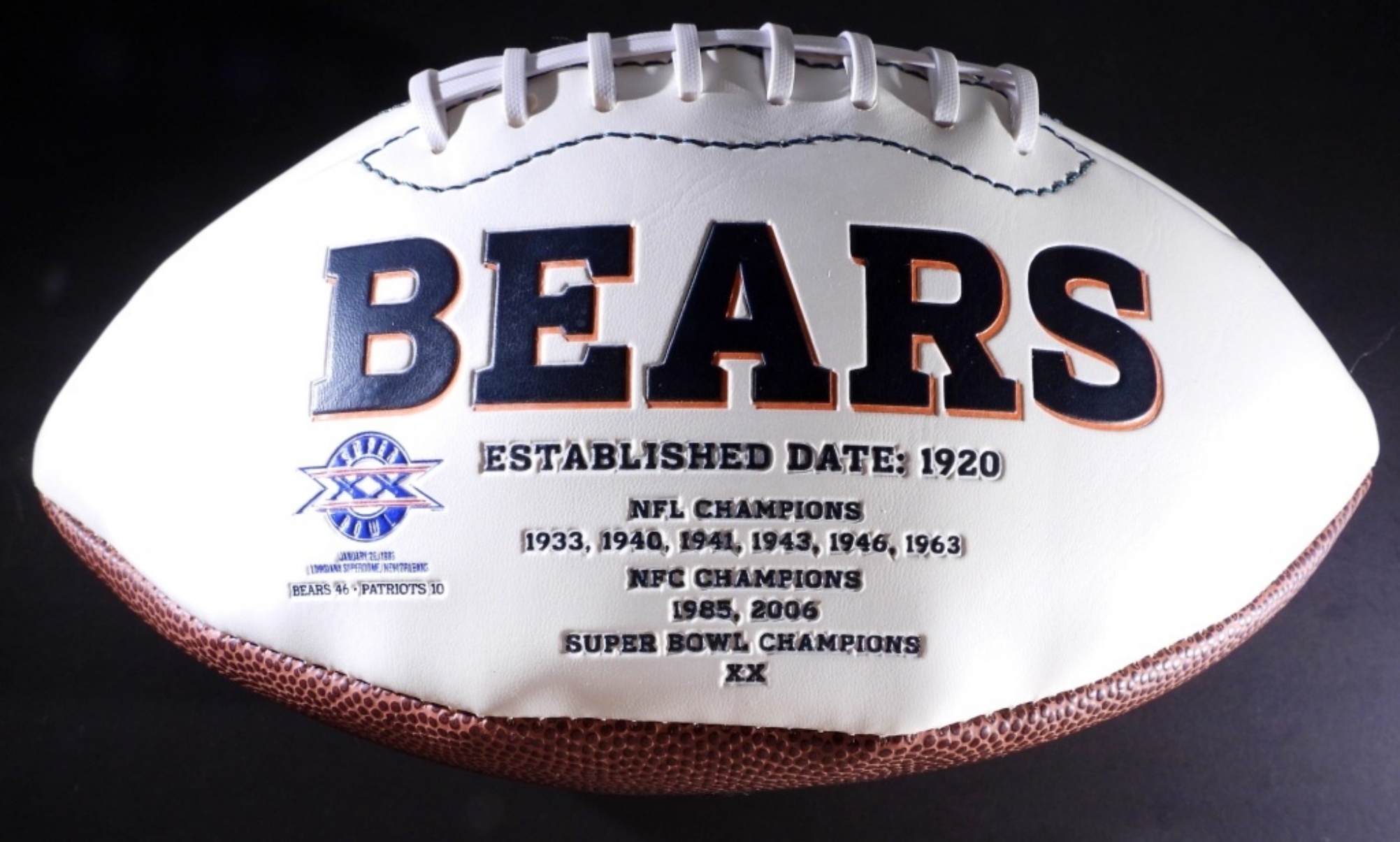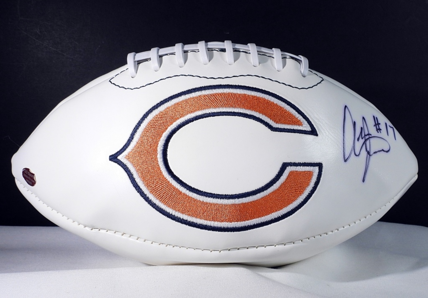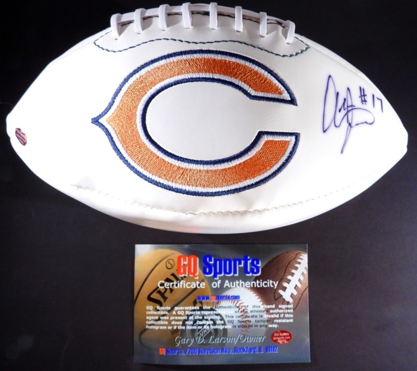 ALSHON JEFFERY #17 CHICAGO BEARS SIGNED ON A BEARS FOOTBALL SUPER BOWL XX. COA FROM GQSPORTS.COM BUT IS UNVERIFIED #A6532
