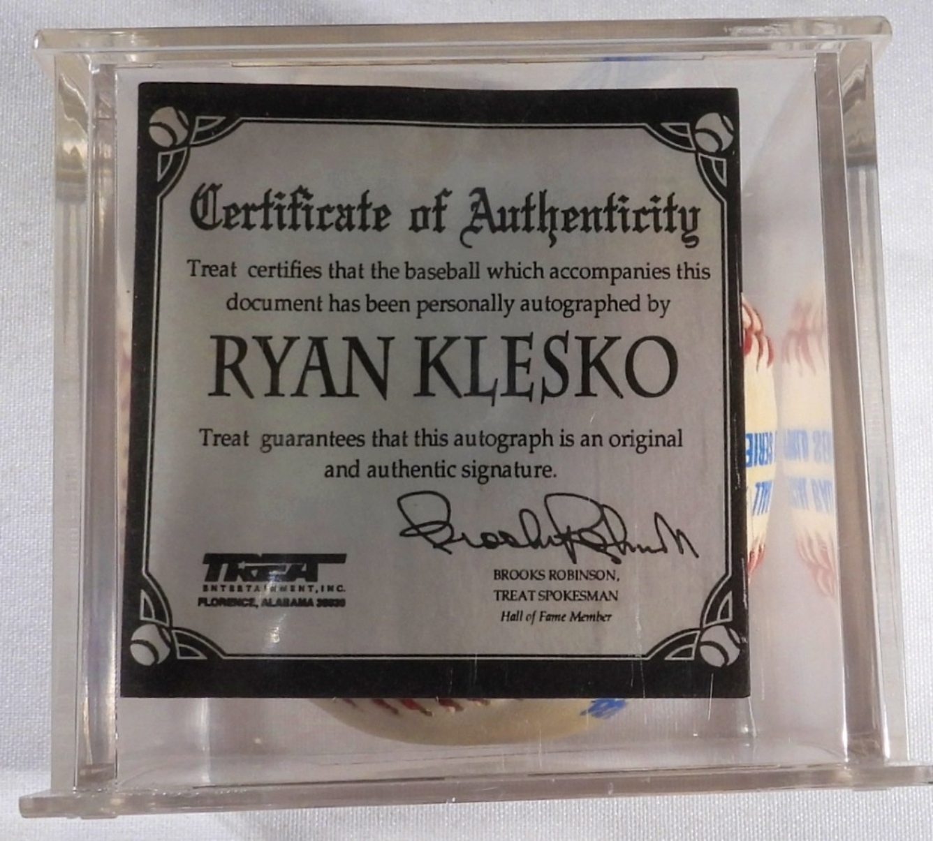 RYAN KLESKO AUTOGRAPHED BASEBALL WITH COA IN DISPLAY CASE