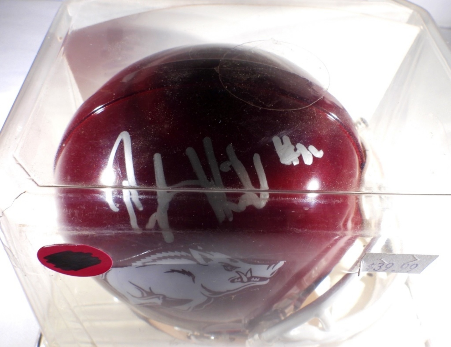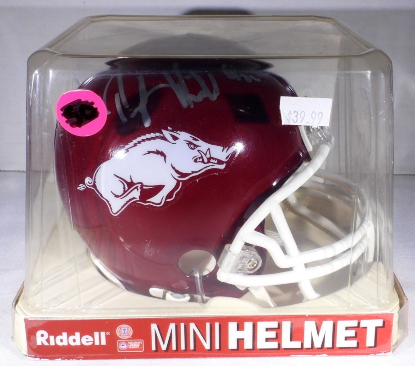 PEYTON HILLS AUTOGRAPHED ARKANSAS MINI HELMET