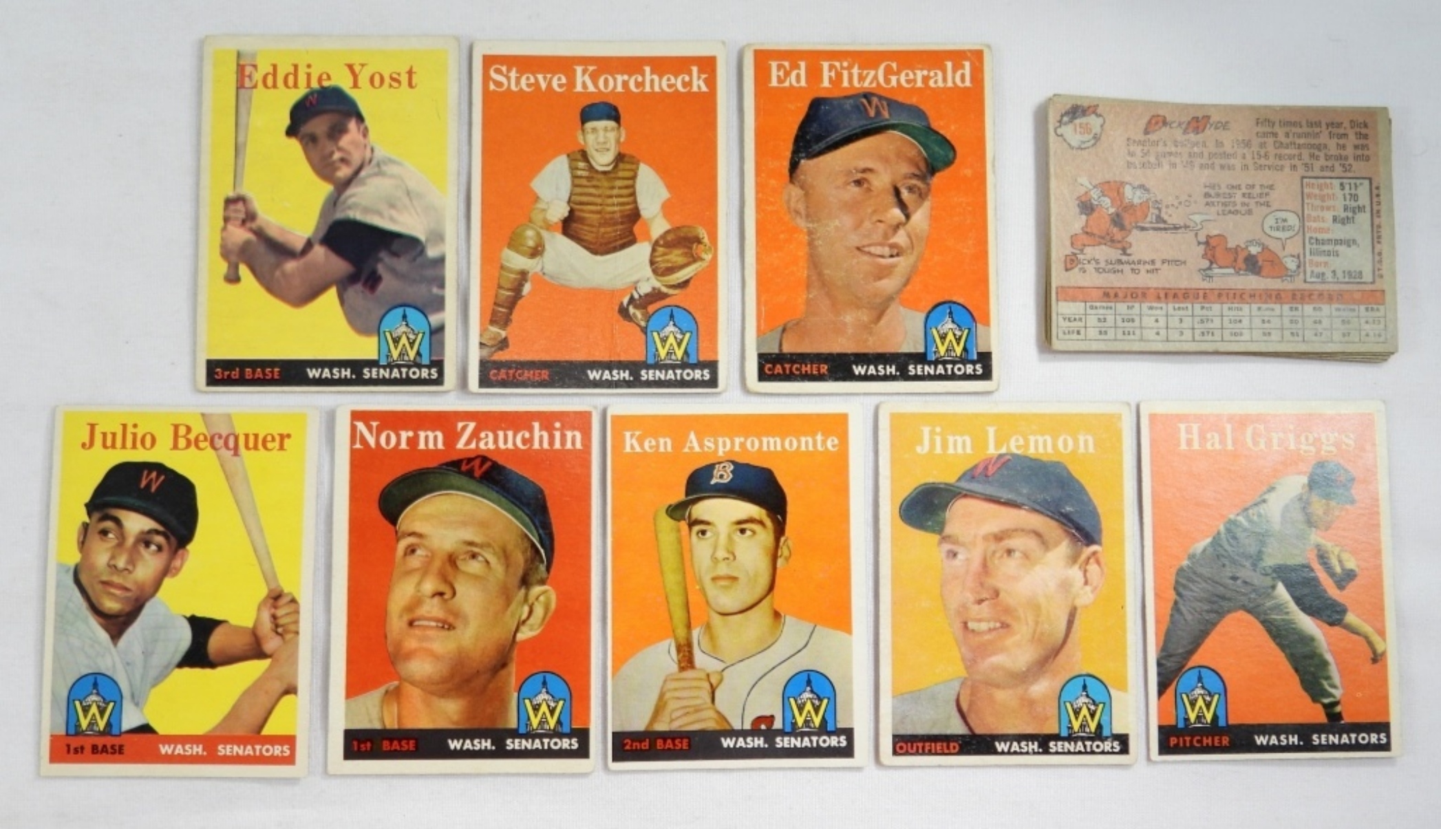 (18) VG 1958 WASH. SENATORS CARDS ( EDDIE YOST, ART SCHULT, STEVE KORCHECK, AND MORE)