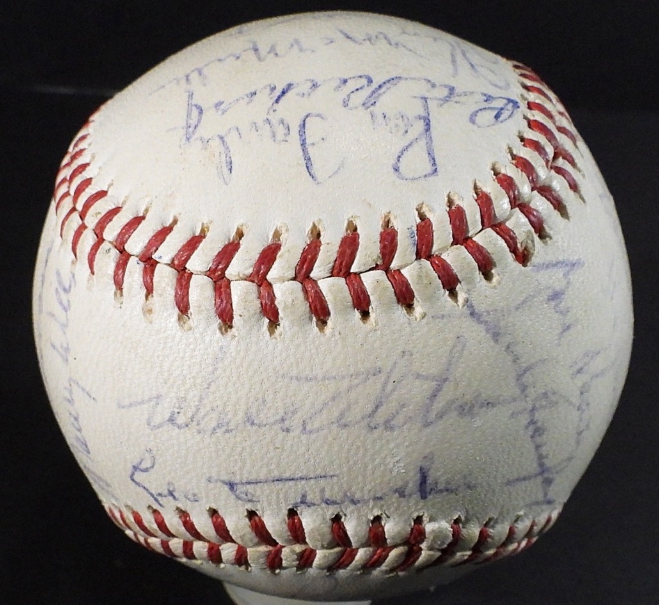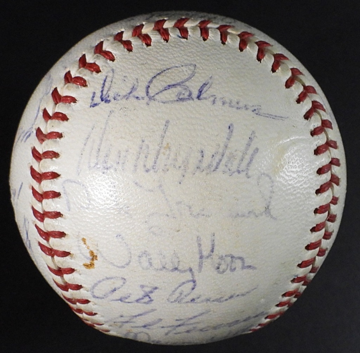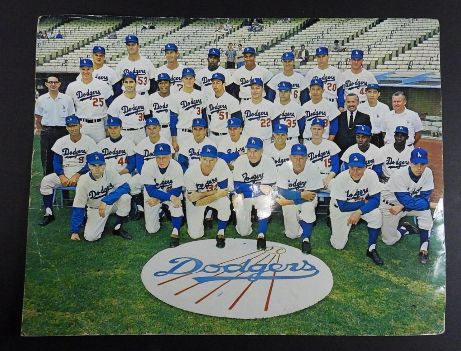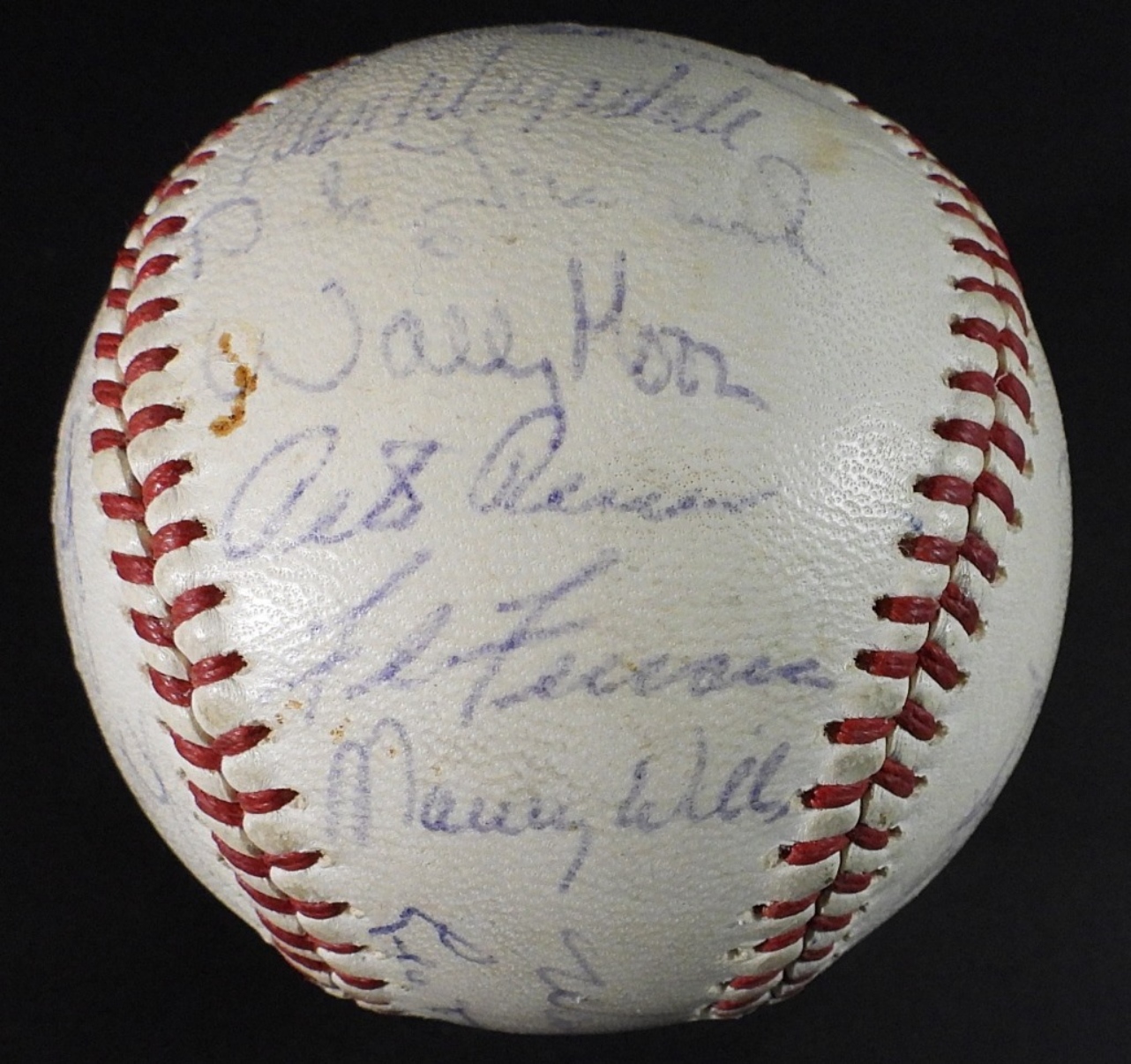 (27) SIGNATURES – SANDY KOUFAX, WALT ALSTON, DON DRYSDALE, MAURY WILLS & MORE – NO COA / UNVERIFIED on NATIONAL LEAGUE BALL with TEAM PHOTO