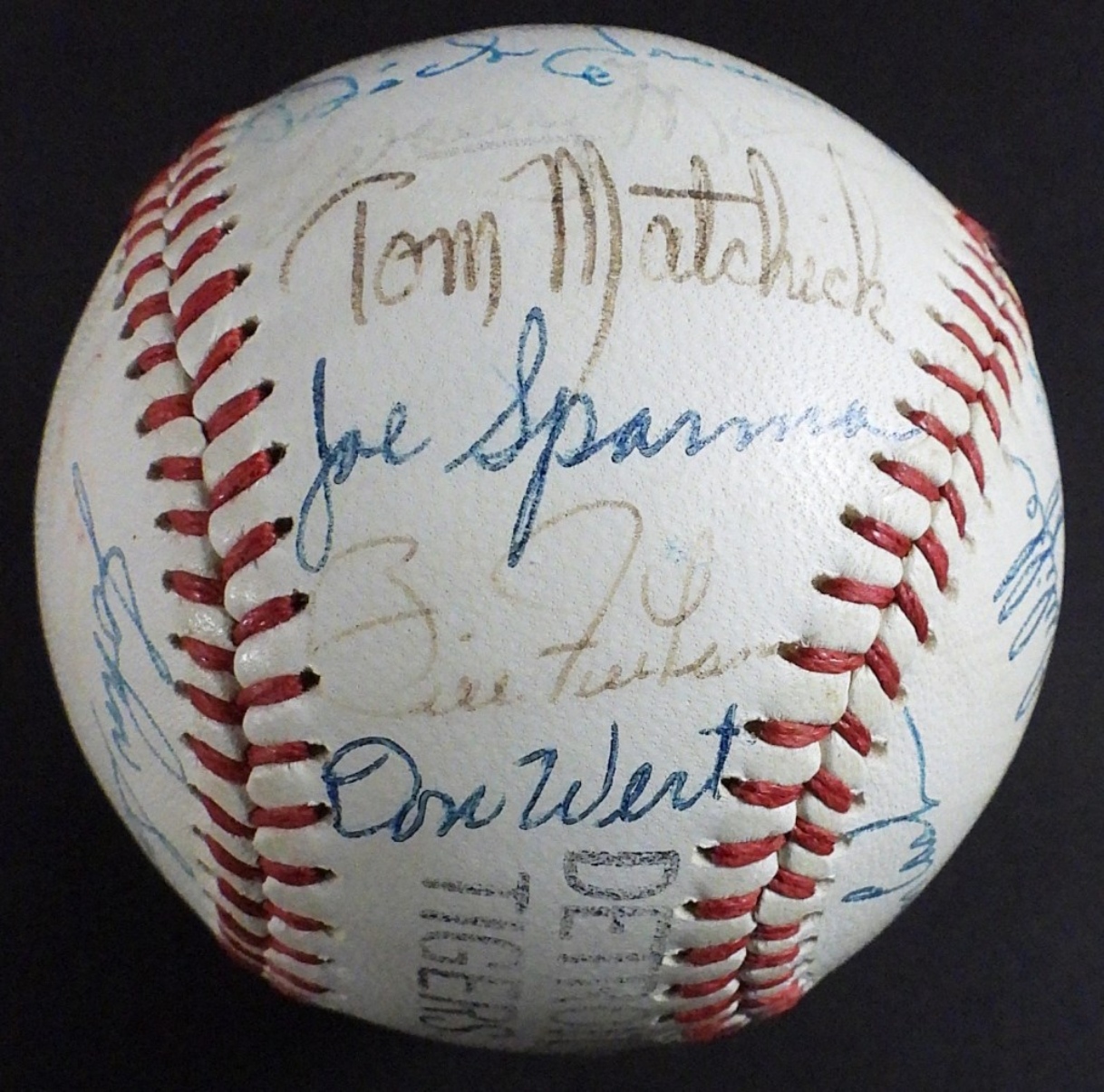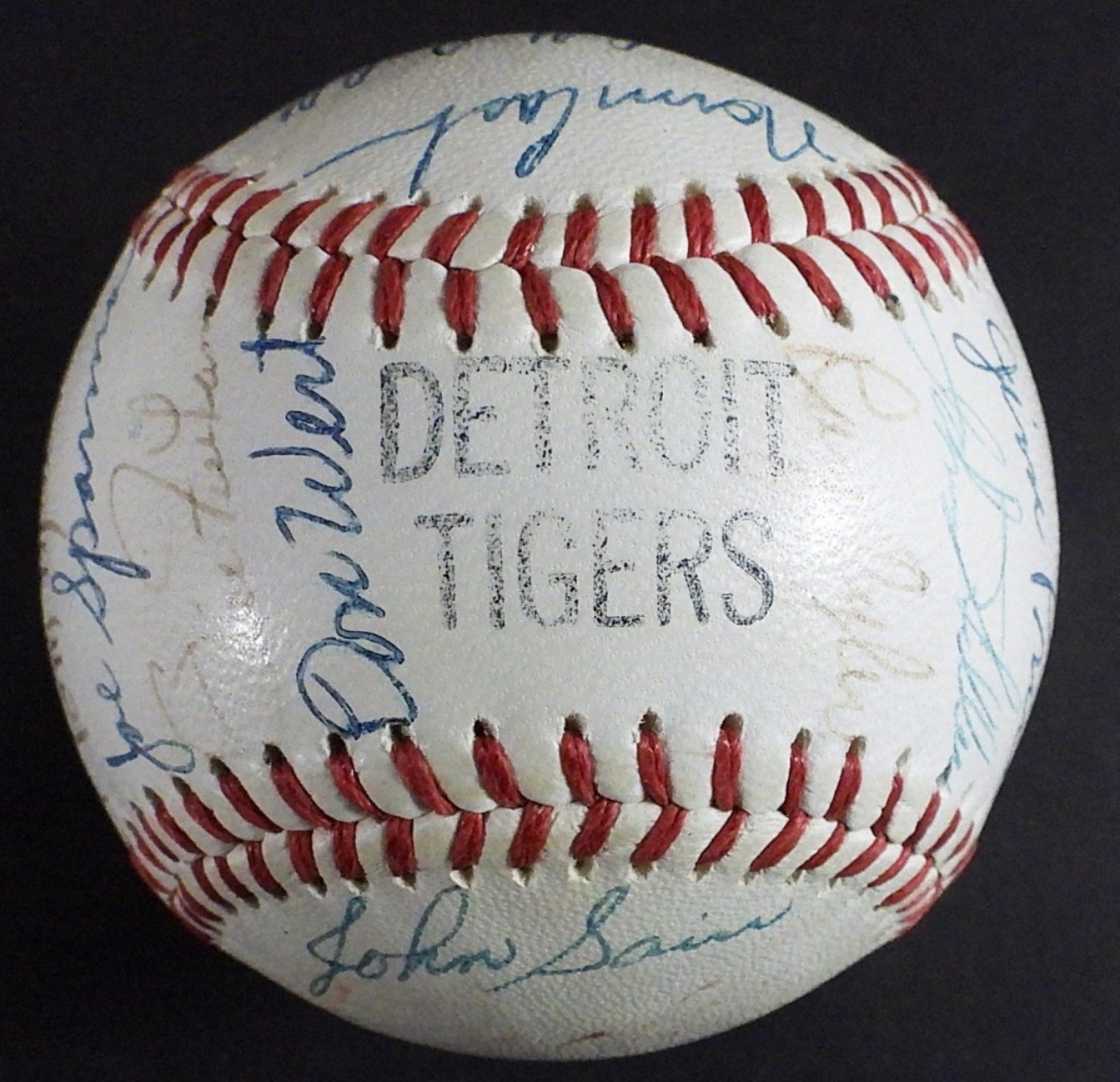 (29) SIGNATURES – AL KALINE, MAYO SMITH, DENNY McLAIN, WILLIE HORTON, MICKEY STANLEY, NORM CASH, JOHN SAIN, MICKEY LOLICH & MORE – NO COA / UNVERIFIED on DETROIT TIGERS BALL
