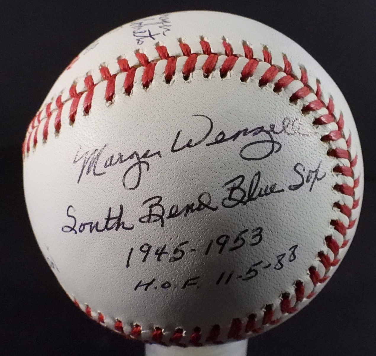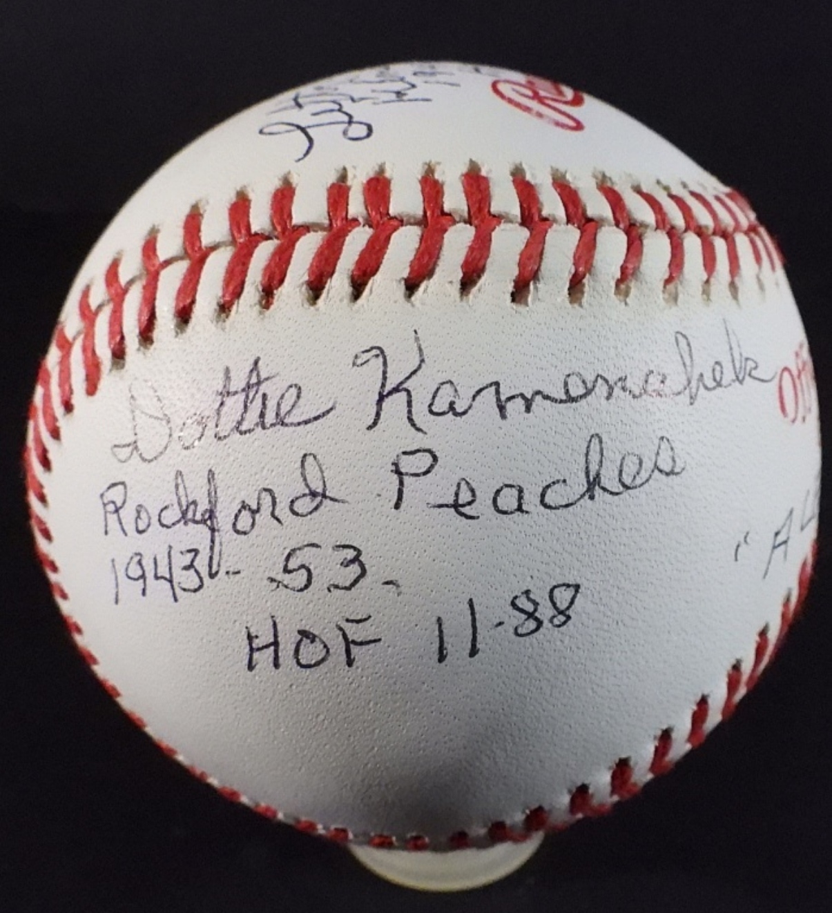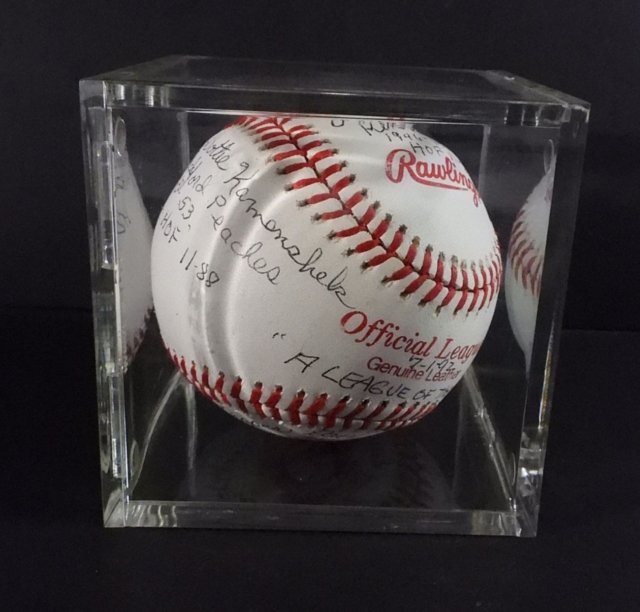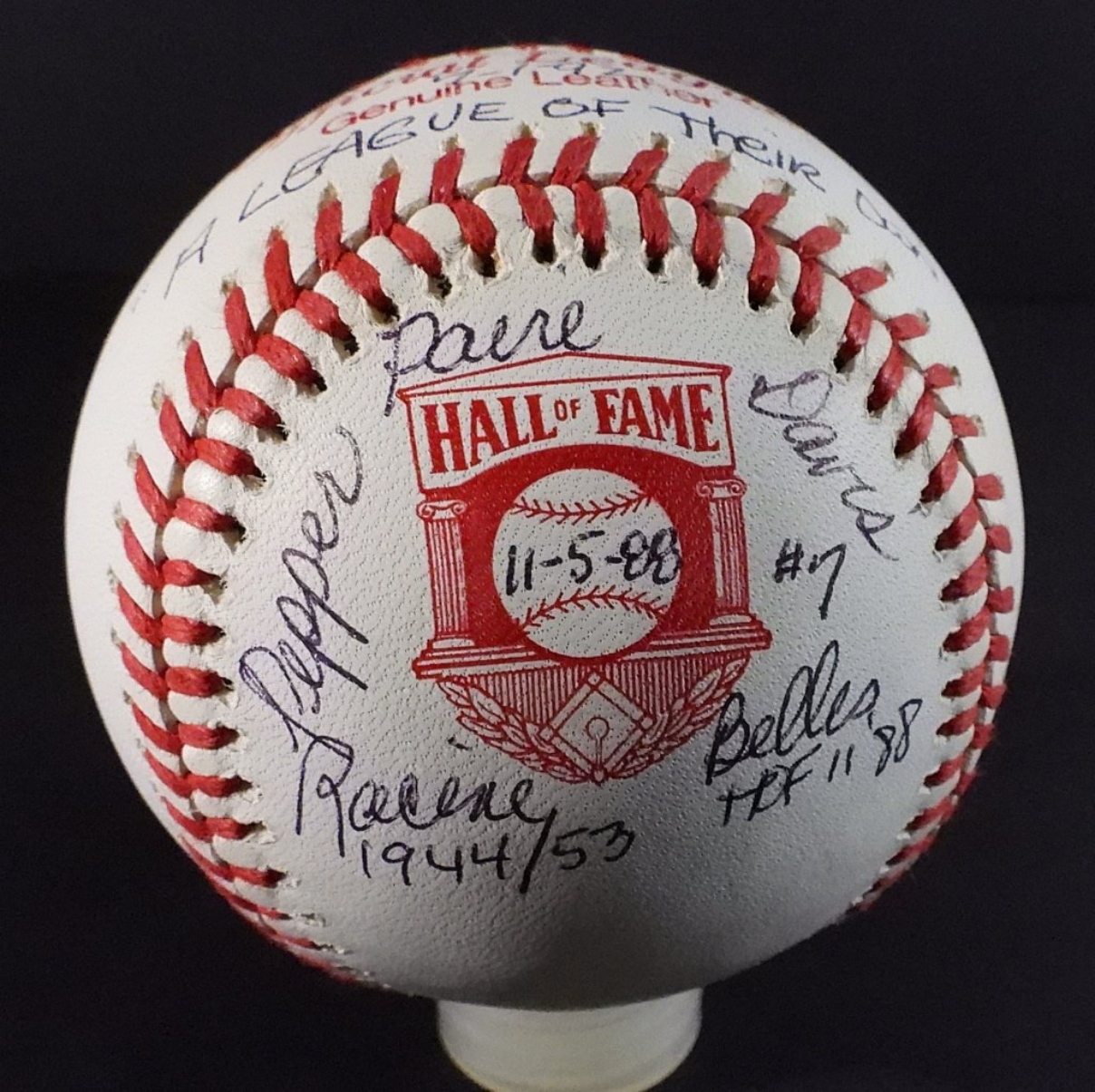 (5) SIGNATURES on HOF 11-5-88 BALL, PEPPER DAVIS, RACINE BELLEA, LEFTY HOHLMAYER, DOTTIE KAMENSKEK, MARGE WENZELL – VERY NICE CONDITION – NO COA / UNVERIFIED