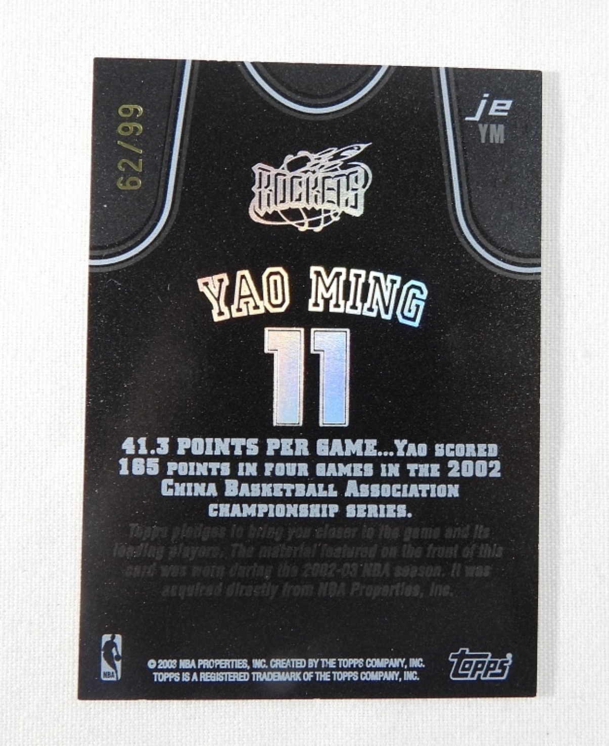 YOA MING, 2002-2003, TOPPS JERSEY EDITION, ROOKIE CARD, 62/99 GOOD CONDITION