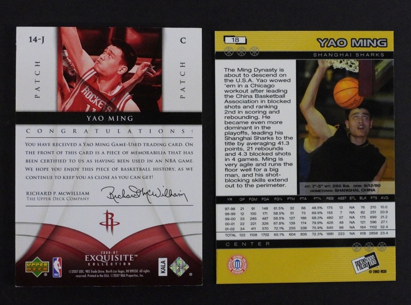 YOA MING 2007 UPPER DECK EXQUISITE COLLECTION 09/10, PRESS PASS 2002 CARD, BOTH IN GOOD CONDITION
