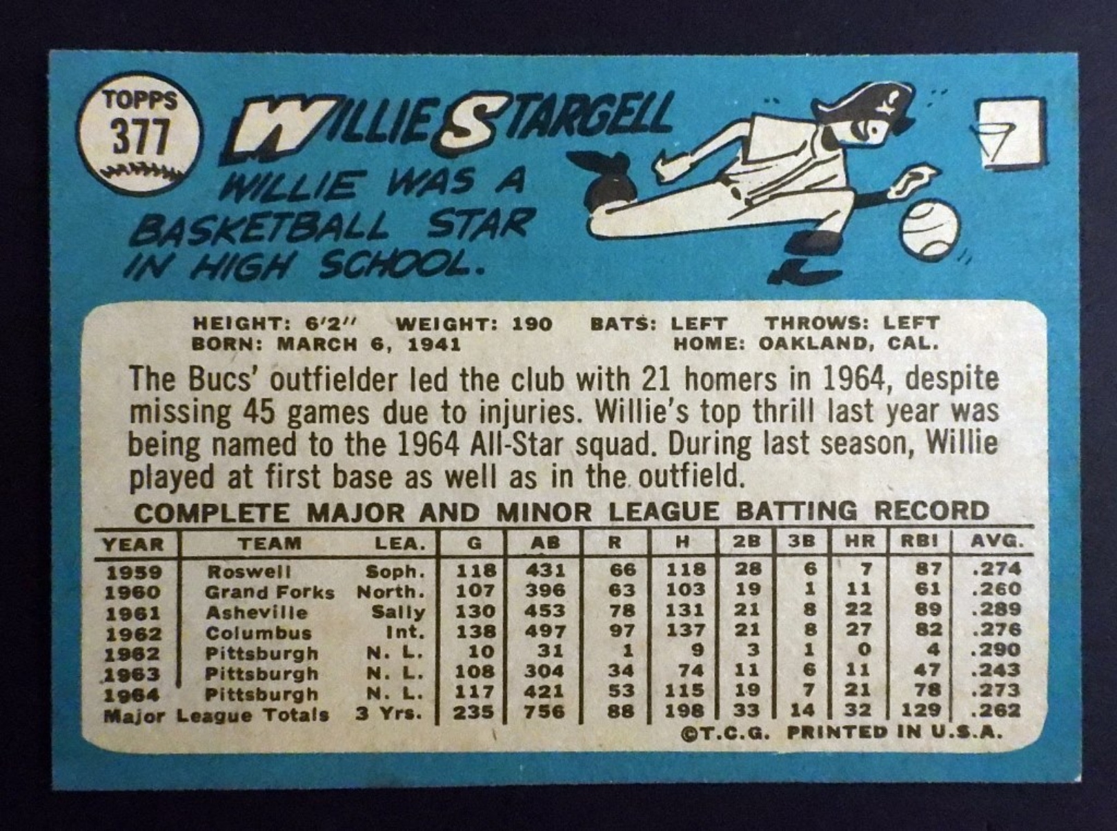 WILLIE STARGEL HoF 1965 TOPPS BASEBALL CARD. NM/M