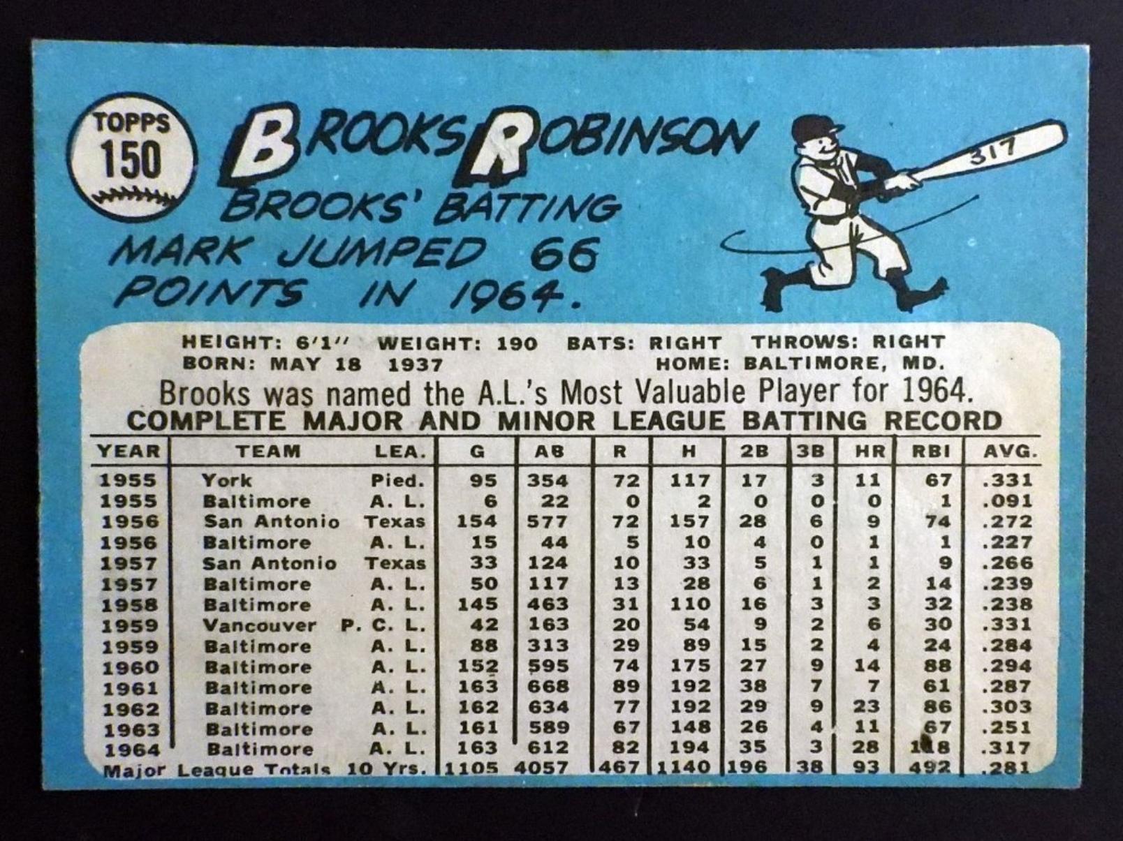 BROOKS ROBINSON 1965 TOPPS BASEBALL CARD. NM