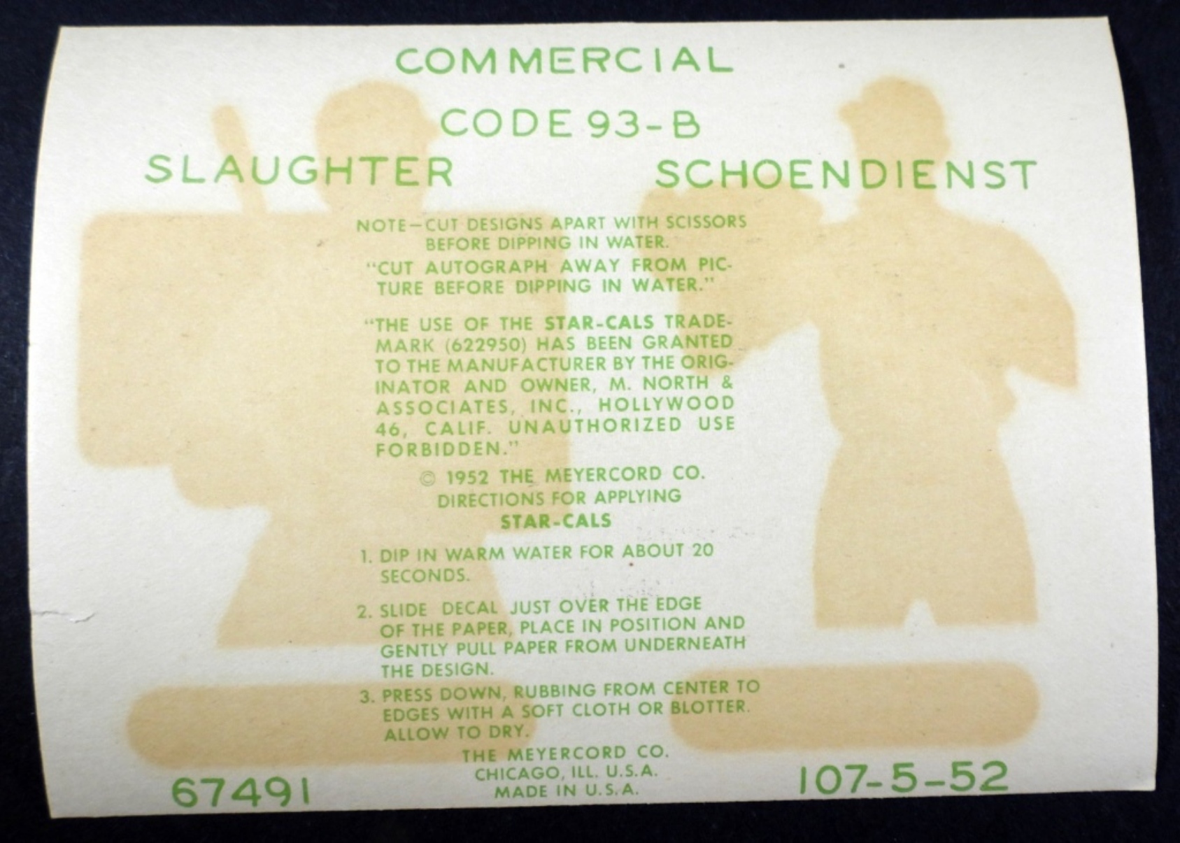 SLAUGHTER 93-B DUAL PLAYER DECAL – NICE EX