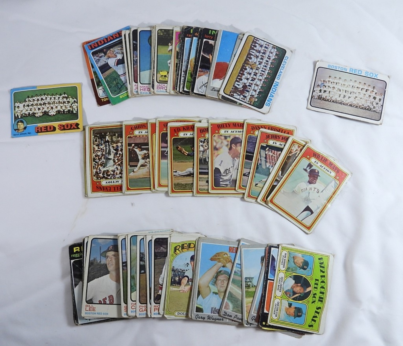 MIXED INDIANS,RED SOX, “IN ACTION” LESSER CONDITION,107 CARDS