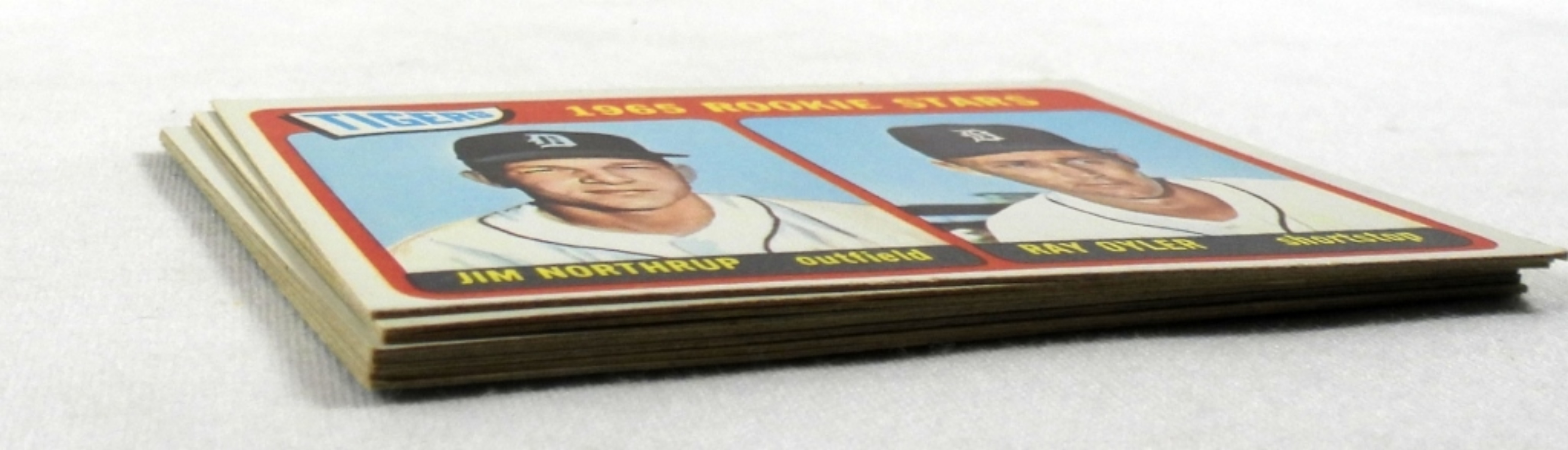 EIGHT 1965 TOPPS ROOKIE STAR BASEBALL CARDS. CARDENAL, SIMPSON, ALOMAR, BRAUN, NORTHRUP, OYLER, DOTTER, WARD, VELDESPINO, TOVAR, HENDERSON, HIATT, JIMINEZ, GIBBS, SCHAAL, WARNER. VG-NM.