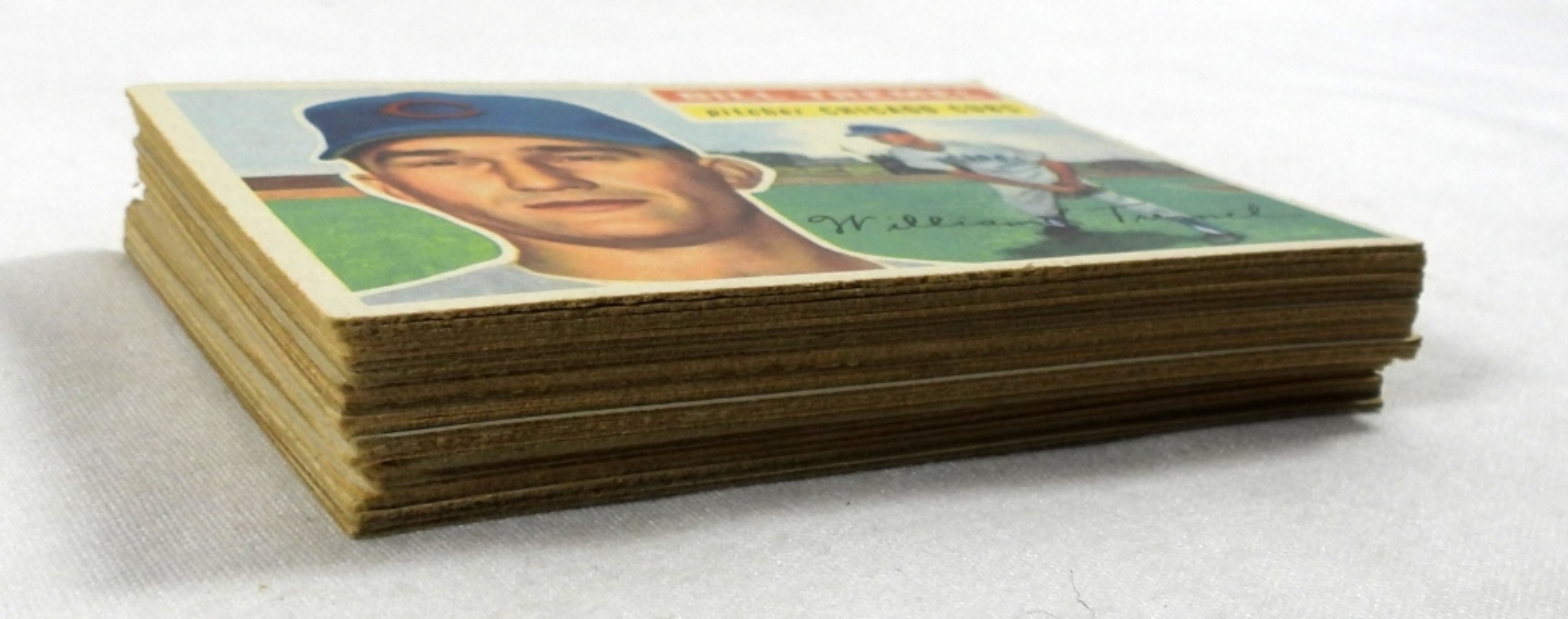(26) 1956 TOPPS MIXED LOT OF BASEBALL CARDS. FAIR / GOOD. YOGI BERRA (HOLES PUNCHED IN CARD), DITMAR, SMITH, ASHBURN, KLUSZEWSKI, HARRIS AND MUCH MORE!