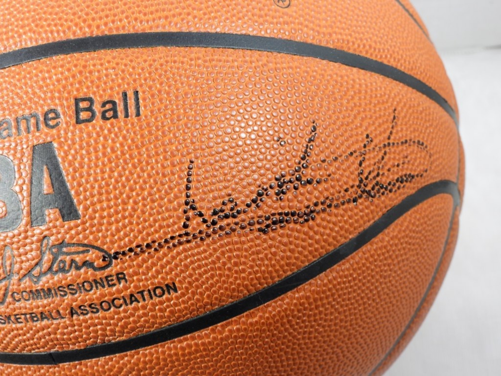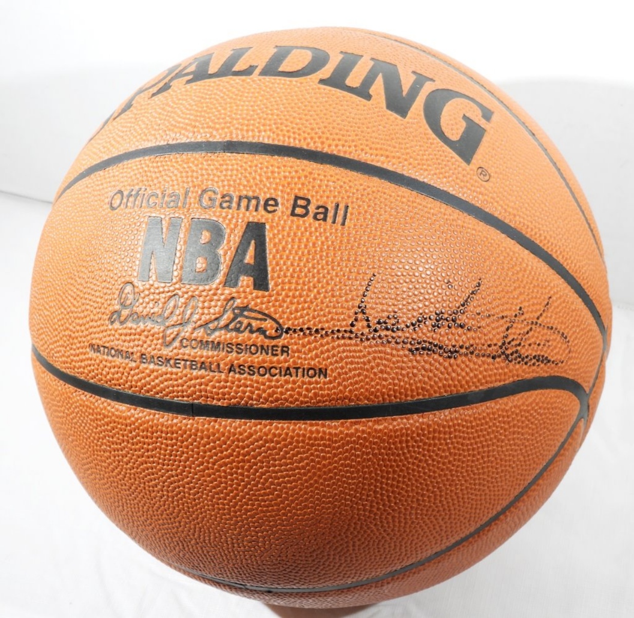 OFFICIAL GAME BALL SIGNED by COMMISSIONER DAVID J STERN – NO COA / UNVERIFIED in CUBE