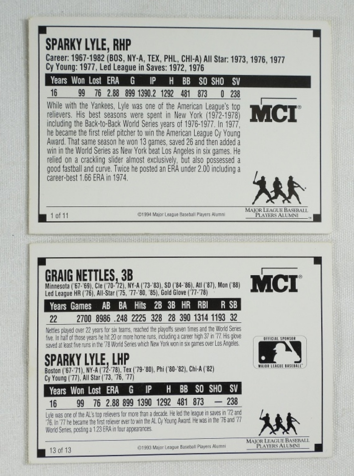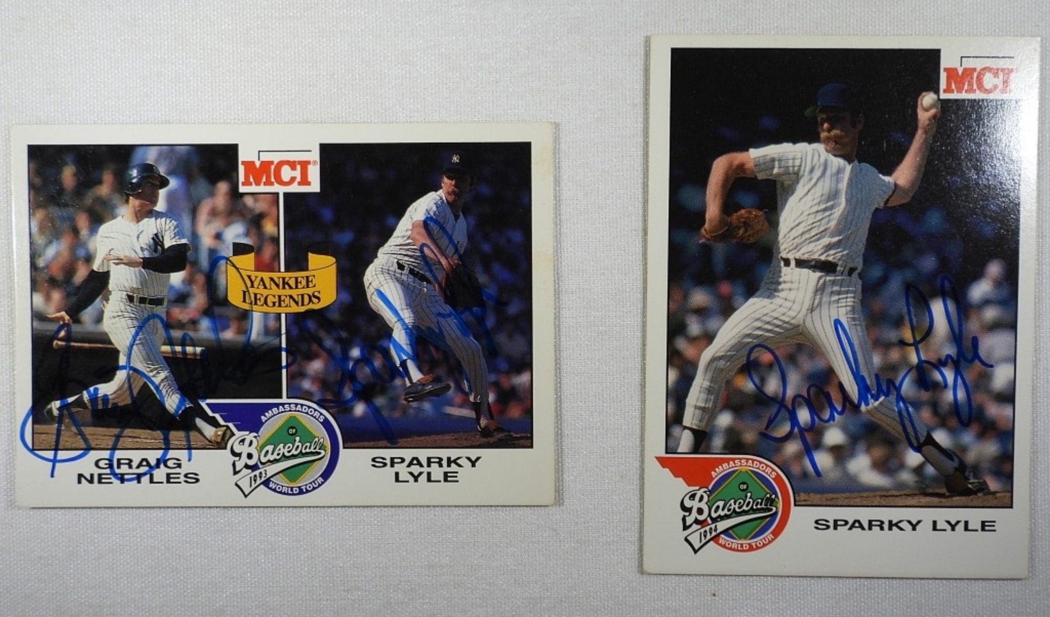 “NO COA/UNVERIFIED” GRAIG NETTLES AND SPARKY LYLE LOT OF 2 CARDS