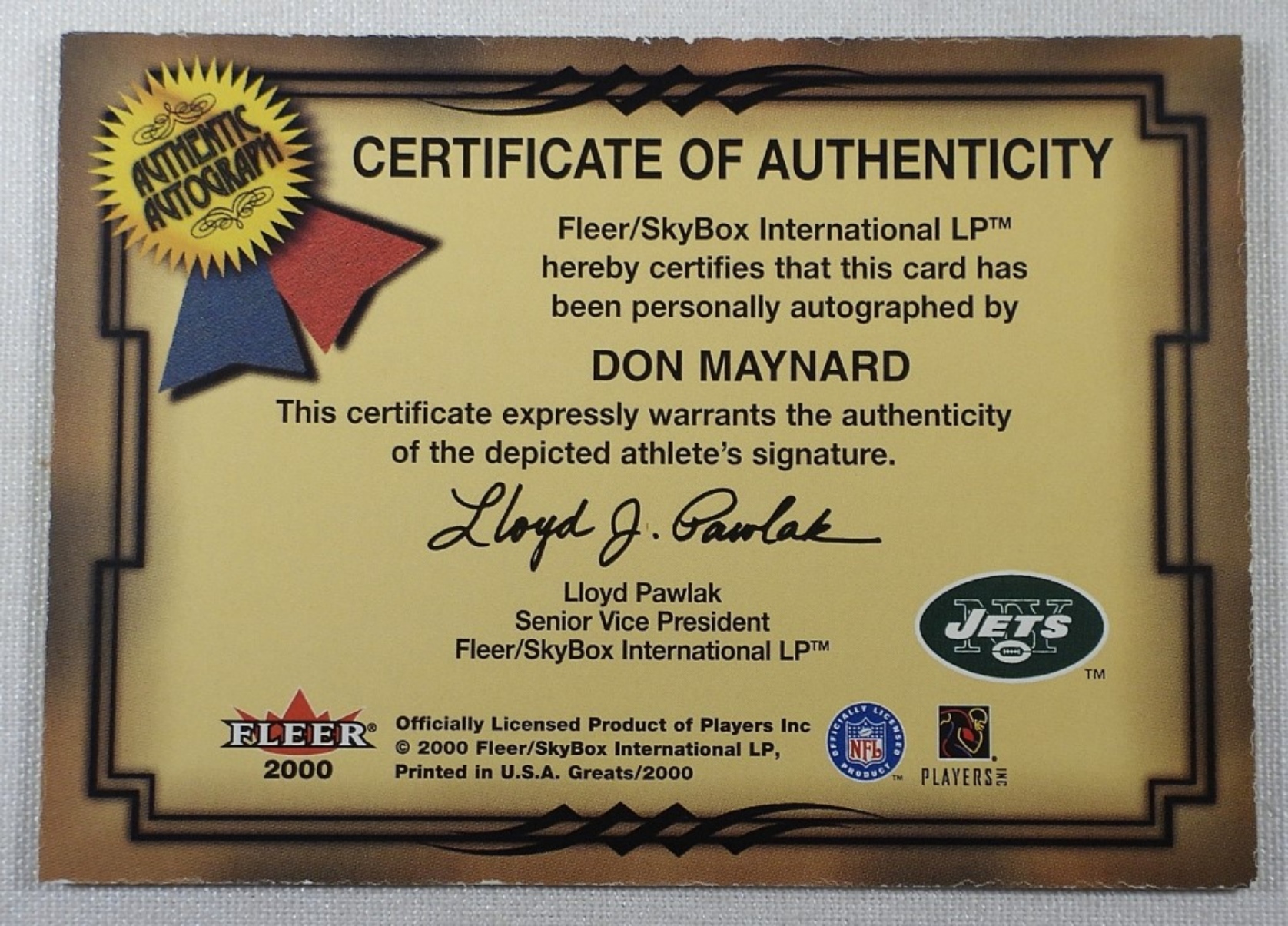 “WITH COA” DON MAYNARD AUTOGRAPHED CARD FLEER 2000
