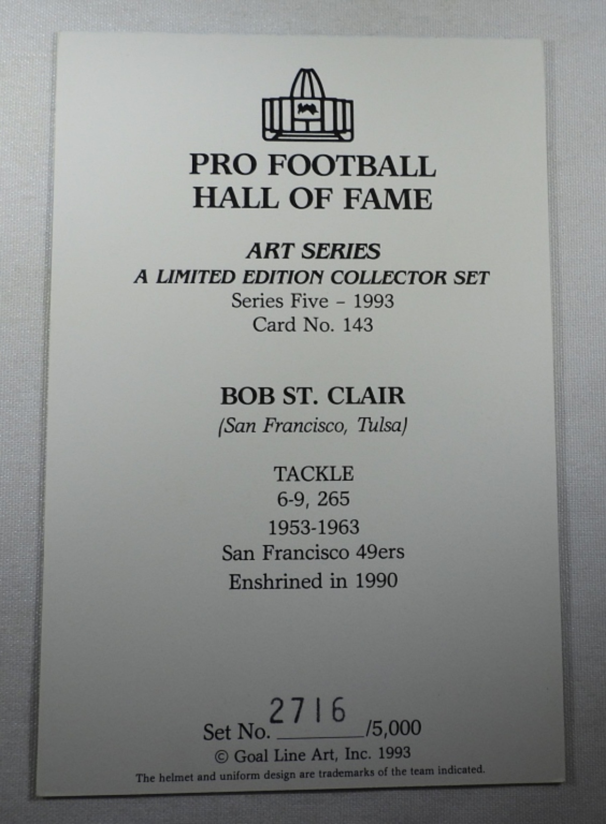 UNVERIFIED BOB ST CLAIR PRO FOOTBALL HALL OF FAME POST CARD SET NO.2716/5000