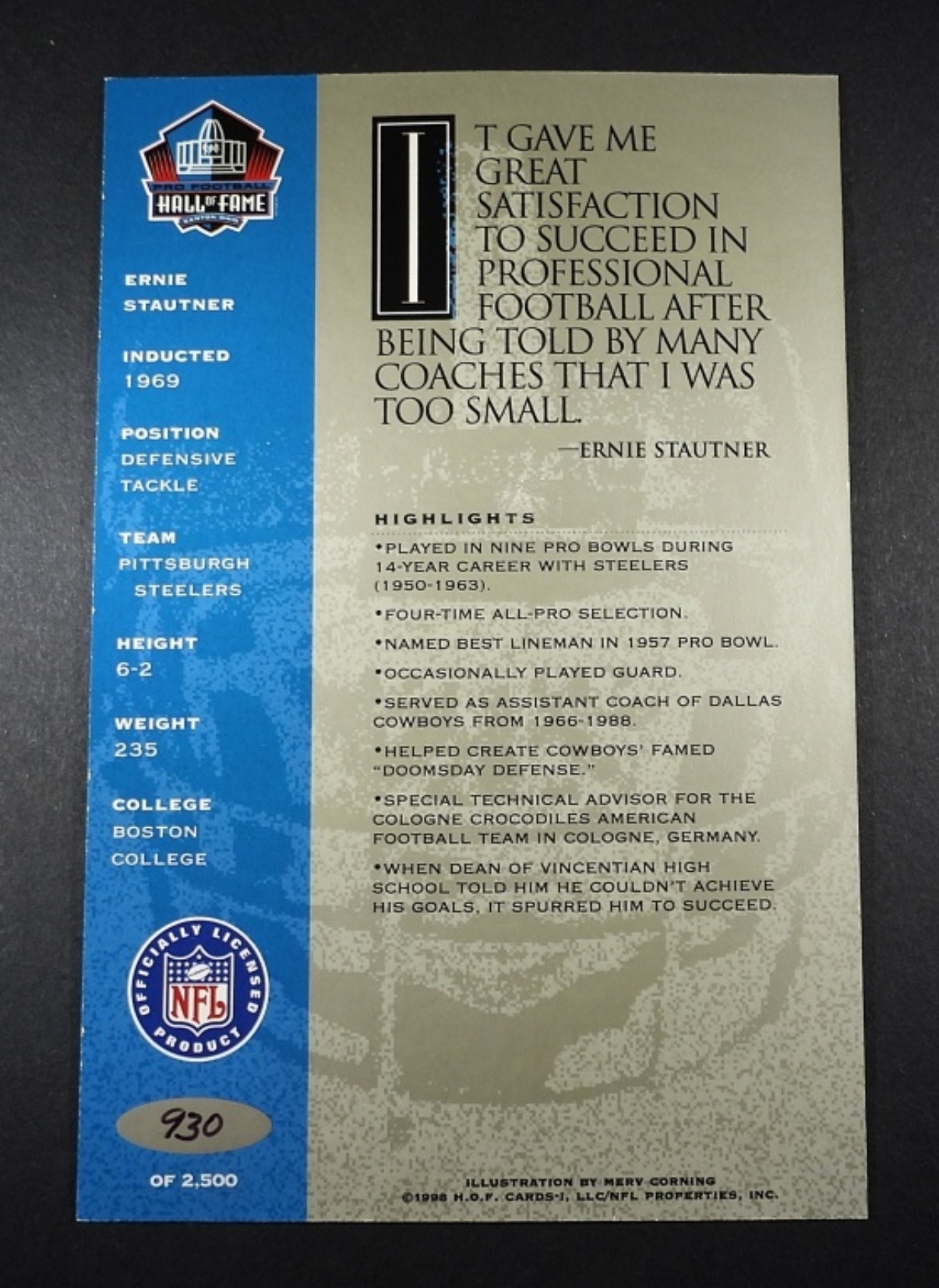 UNVERIFIED HALL OF FAME POSTCARD 930 OF 2500