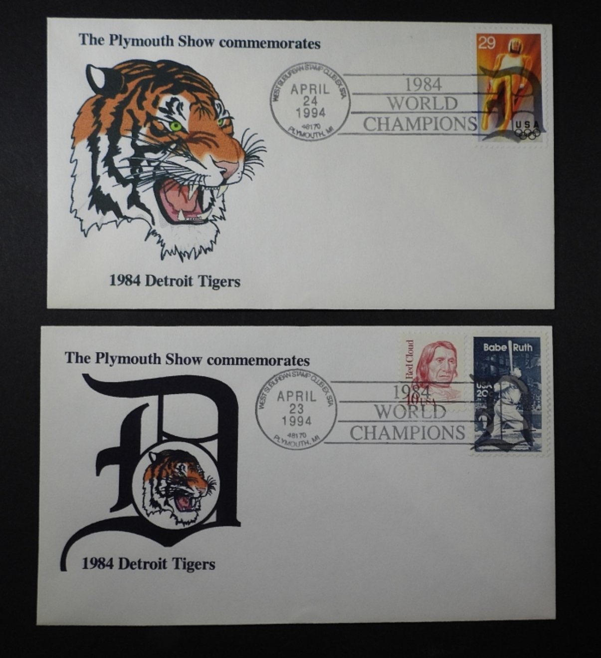 TWO DETROIT TIGERS ENVOLOPS, AND A GORDON HOWE IN LOVING MOMORY
