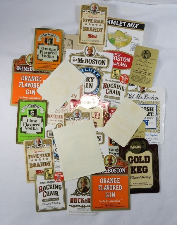 25 VINTAGE ALCOHOL BOTTLE LABELS WITH DIRECTIONS ON HOW TO DECORATE WITH LABELS.