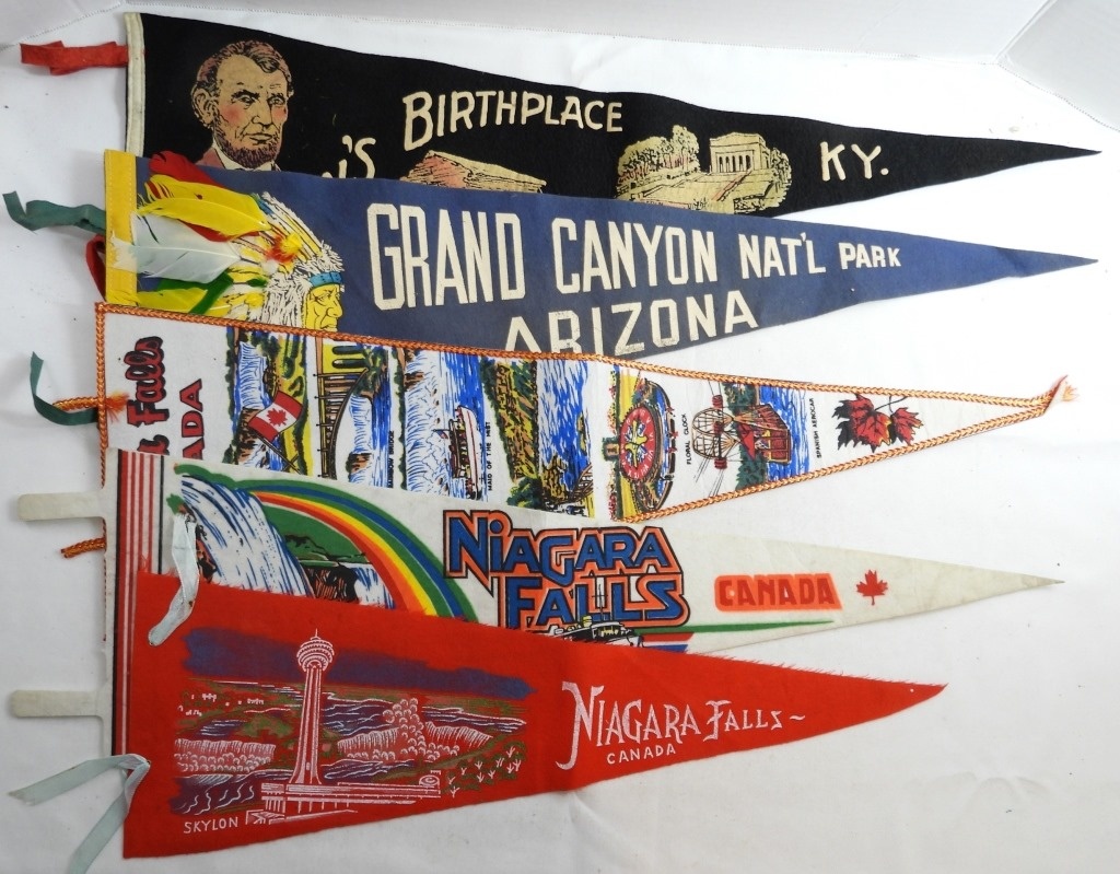 (5) VINTAGE FELT PENNANTS, GRAND CANNON, ARIZONA, KY LINCOLNS BIRTH PLACE, 3 NIAGARA FALLS CANADA .. ALL DIFFERENT