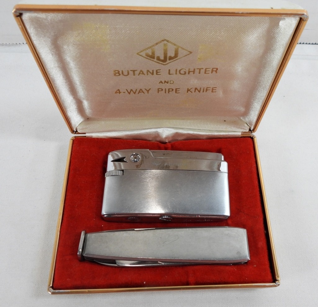 JJJ BUTAIN LIGHTER AND 4-WAY PIPE KNIFE IN WHITE BOX