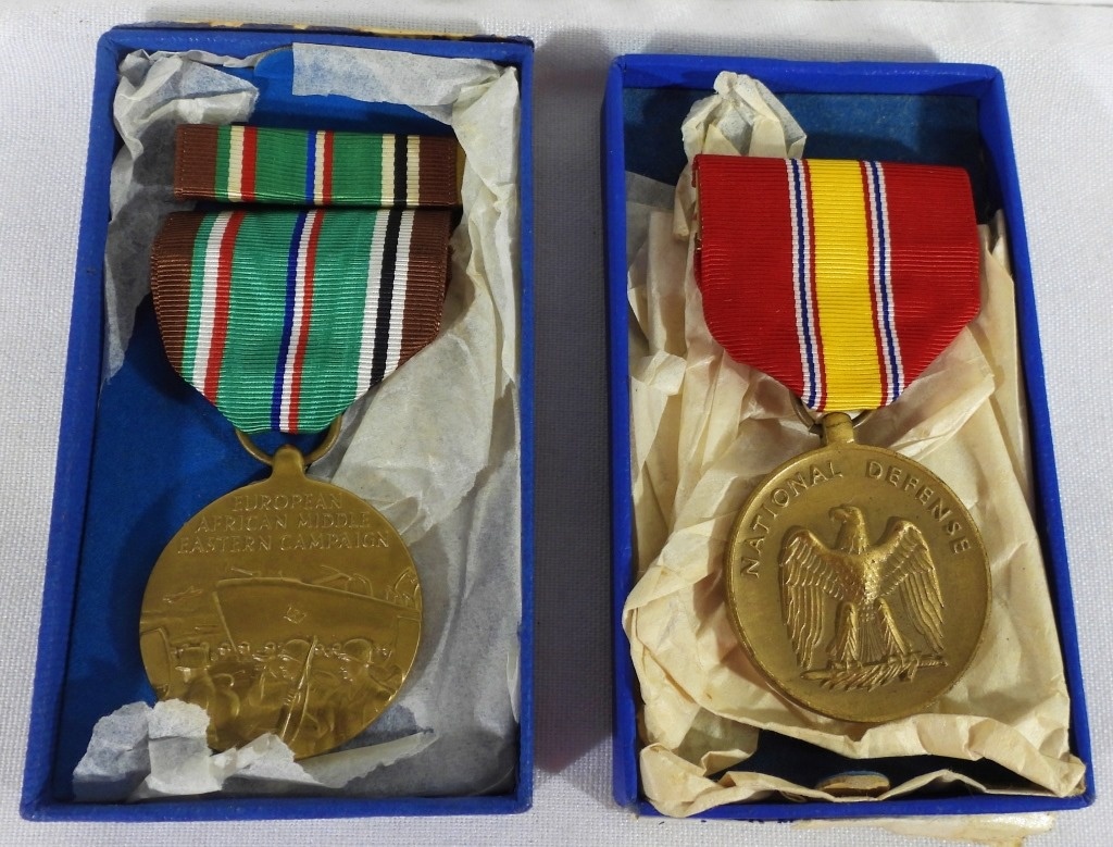 WW2 US NAVY EUROPEAN AFRICAN MIDDLE EASTERN CAMPAIGN, WW2 NATIONAL DEFENSE SERVICE MEDAL