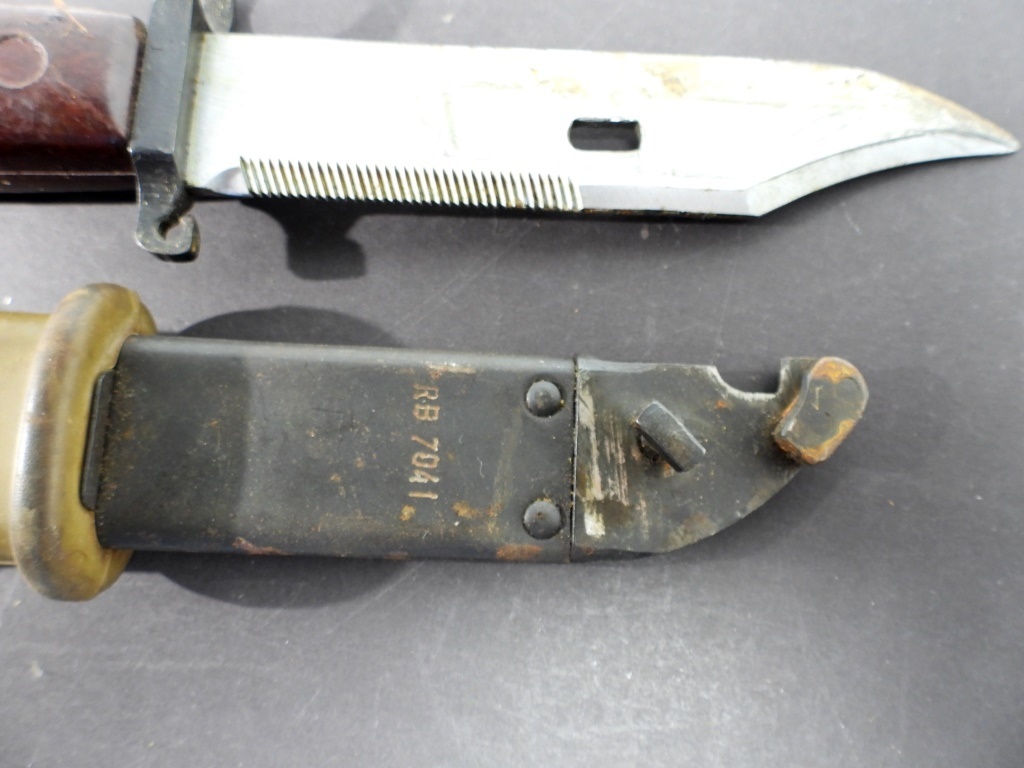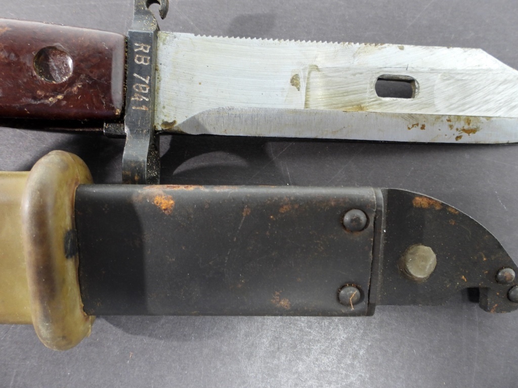 MATCHING NUMBER METAL SCABBORD AND BAYONET- RB 7041- 13” FULL KNIFE AND HANDLE, 6” BLADE,