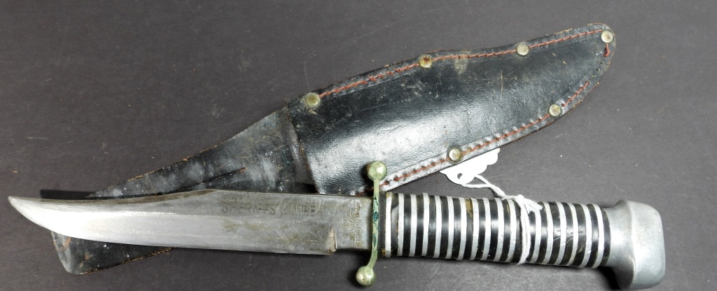7” SHERIFFS KNIFE WITH BLACK LEATHER SHEATH, FULL 11 1/2”