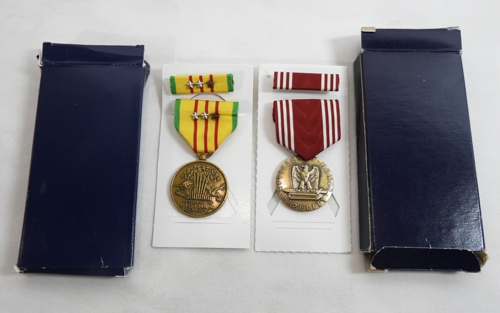 BOTH IN ORIGINAL BOXES, THE CONDUCT MEDAL IS ENGRAVED WITH NAME ON THE BACK