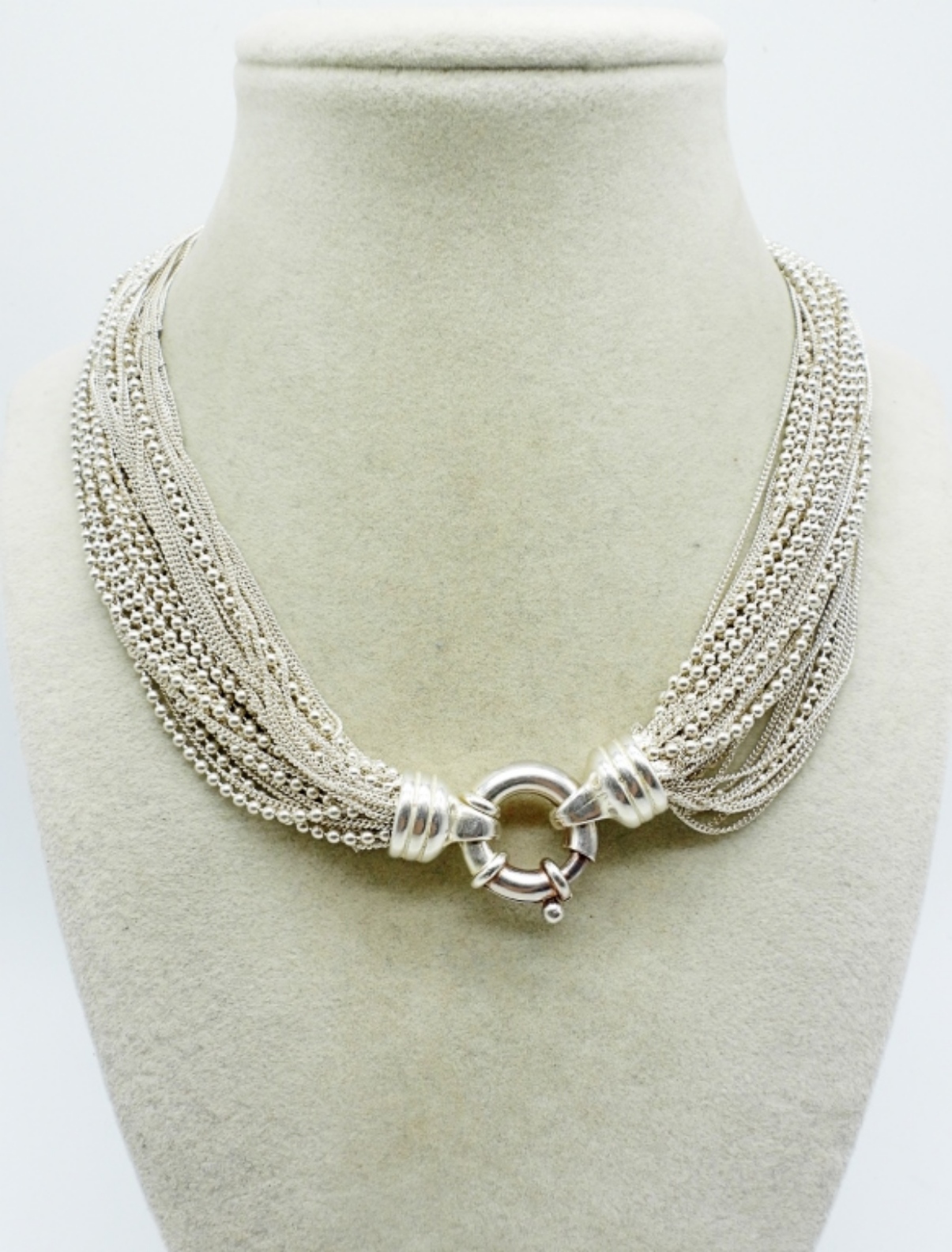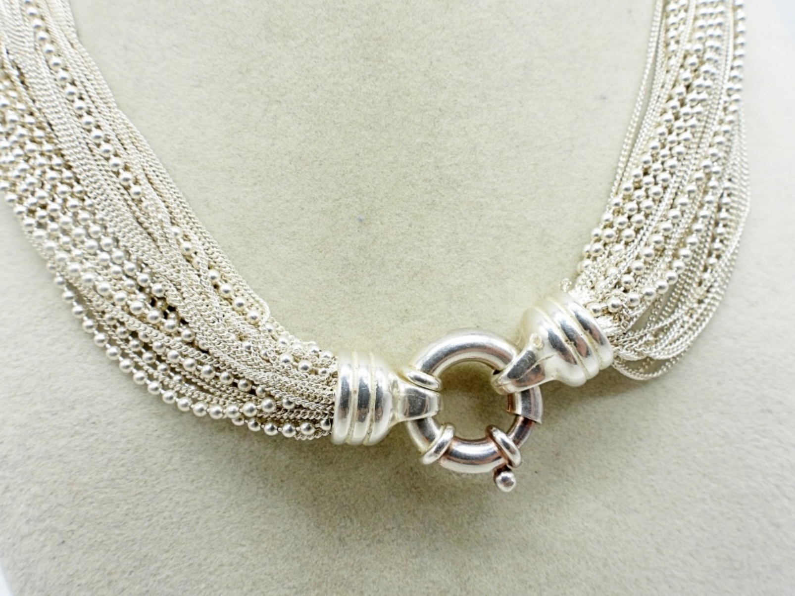 HEAVY MULTI STRAND STERLING NECKLACE. 16″ LONG. (75 DWT)